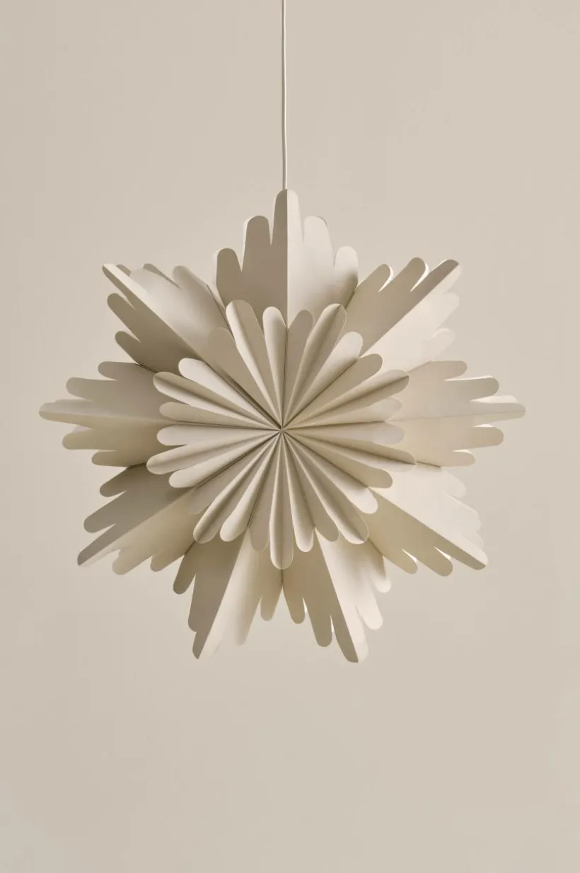 Julstjärnan ALHENA har formen av en vacker snöflinga. Den är vikbar och enkel att förvara, så att den kan återanvändas varje julsäsong.