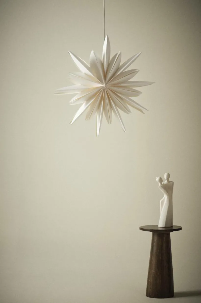 Julstjärna av papper, stor och med olika längd på uddarna. ARCTURUS lyser upp ditt fönster i vintermörkret. Lamphållare med vit plastsladd ingår. Viss montering krävs. Monteringsanvisning medföljer.