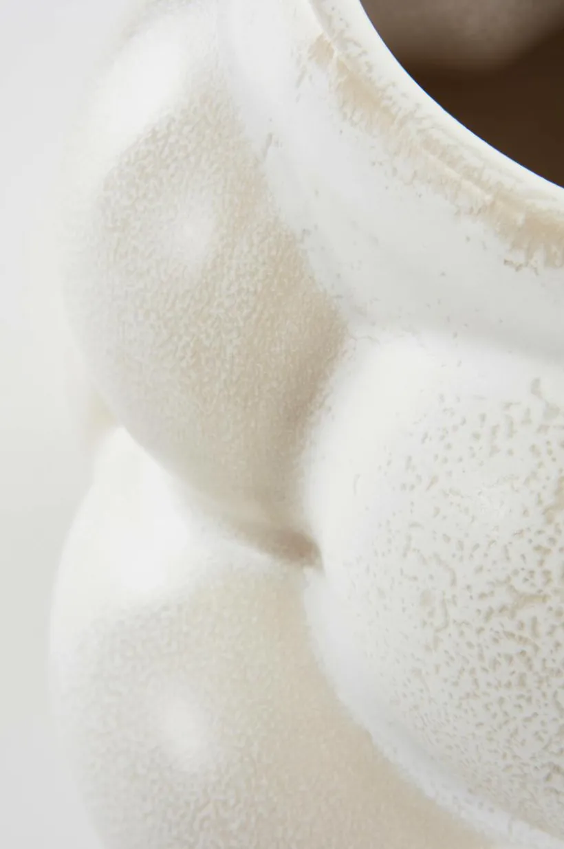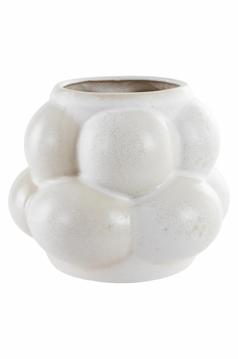 Handgjord vas av keramik. Vasen kan också fungera som kruka. Den vackra vasen har drömlik, futuristisk form med en svagt spräcklig glasyr i milda färger. Även insidan är glaserad. Det fina hantverket gör varje vas unik. Tänk på att keramik kan släppa igenom fukt.