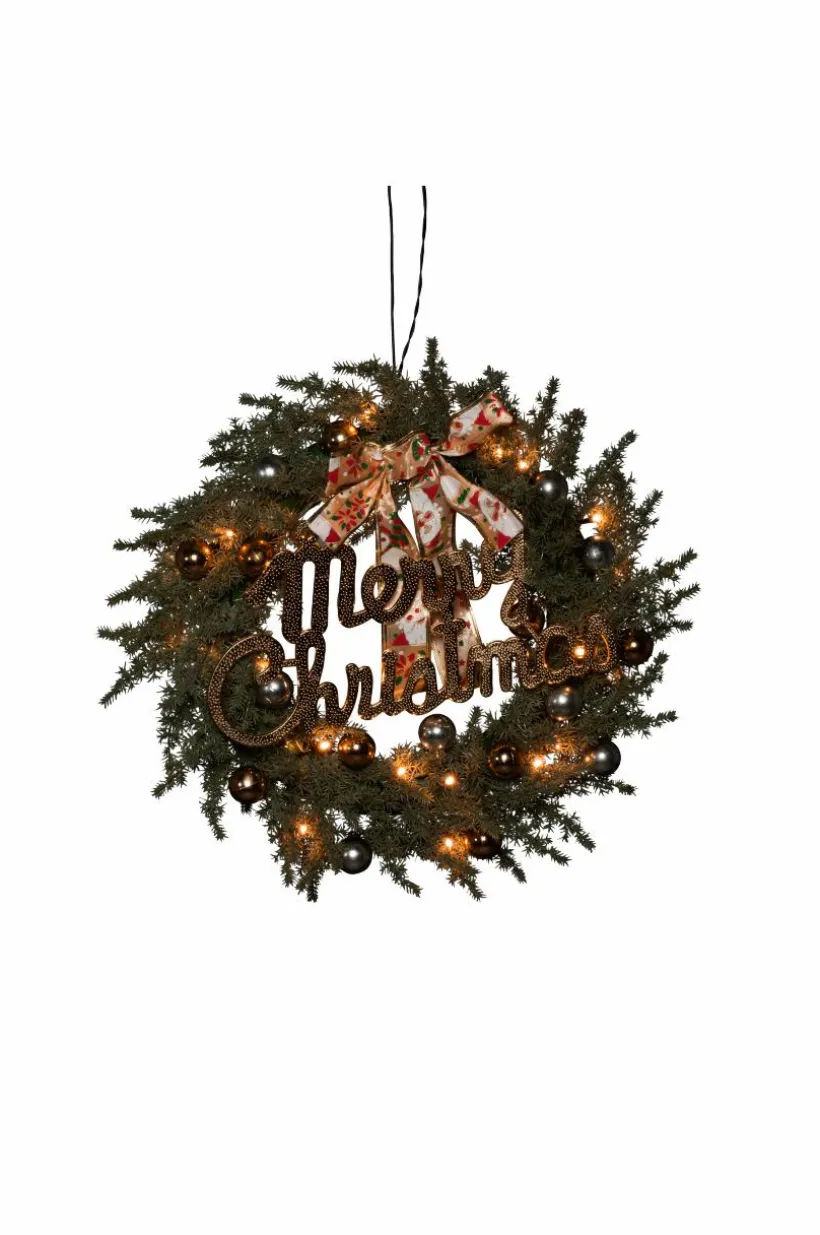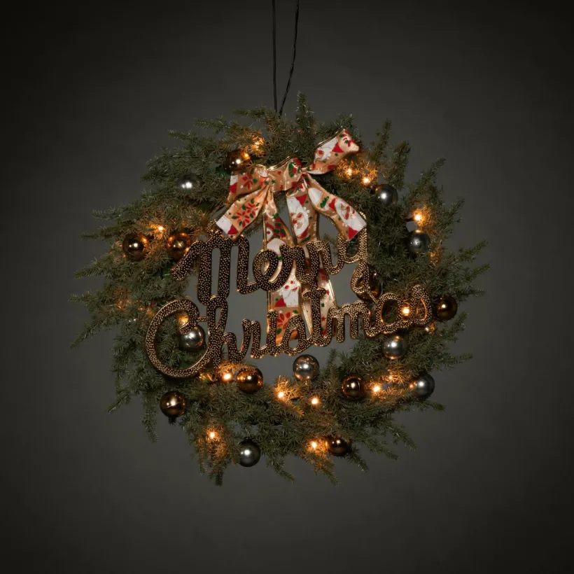 Grankrans med 25 st ledlampor och timer på 9h. 4xaa batterier ingår ej. Diameter 40 cm. Anslutningssladden är 0,2 m