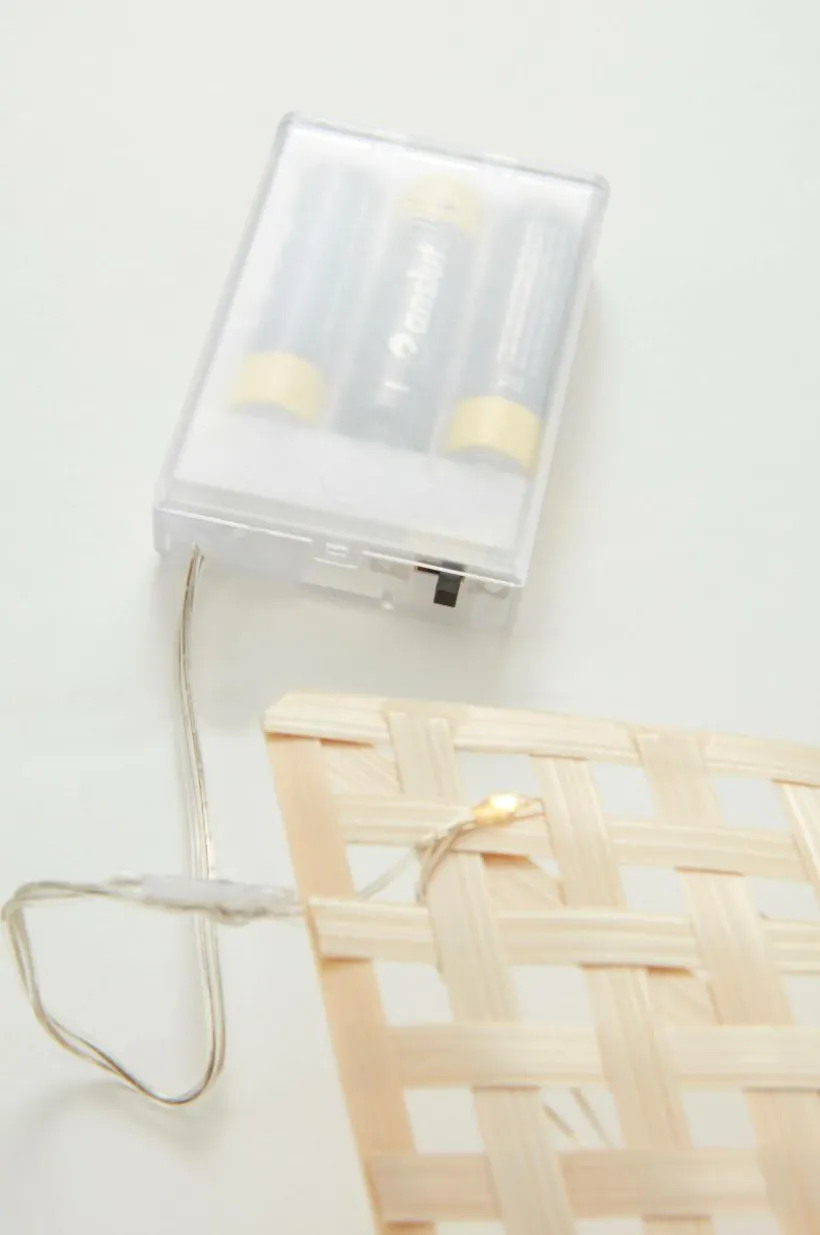Handgjord julstjärna av bambu med 40 små LED-lampor som lyser fint. Drivs med 3 st AA-batterier. Batterier ingår ej.