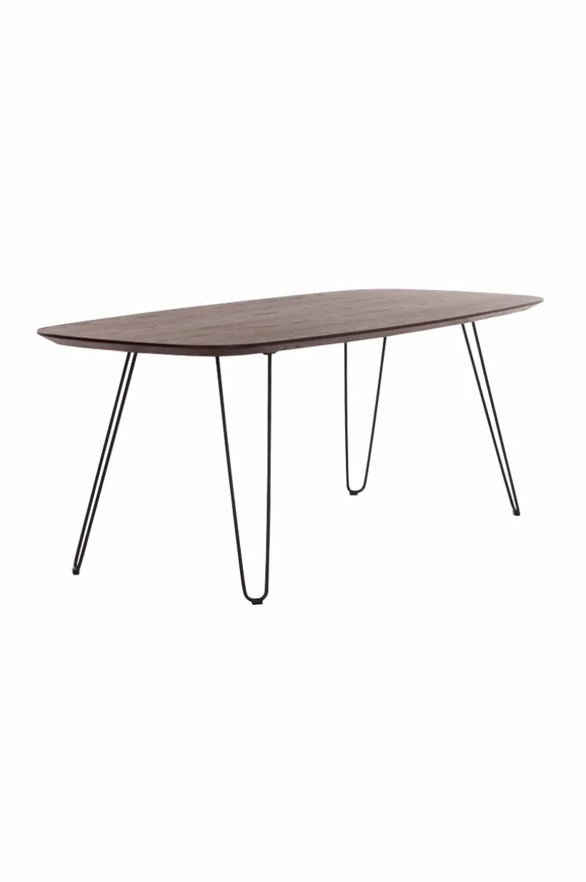 Material: Bordsskiva av fanér eller MDF. Ben av järn eller rostfritt stål.