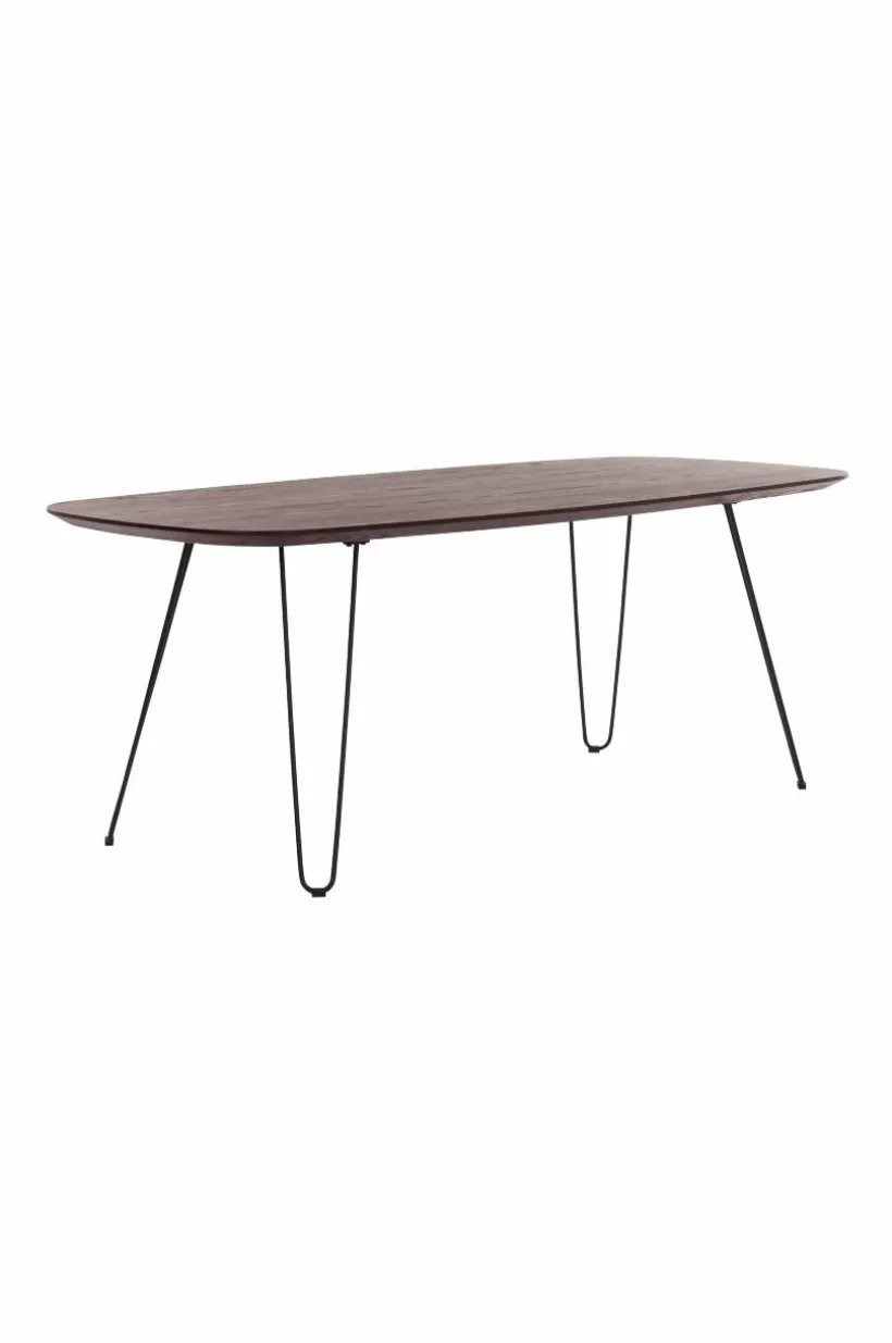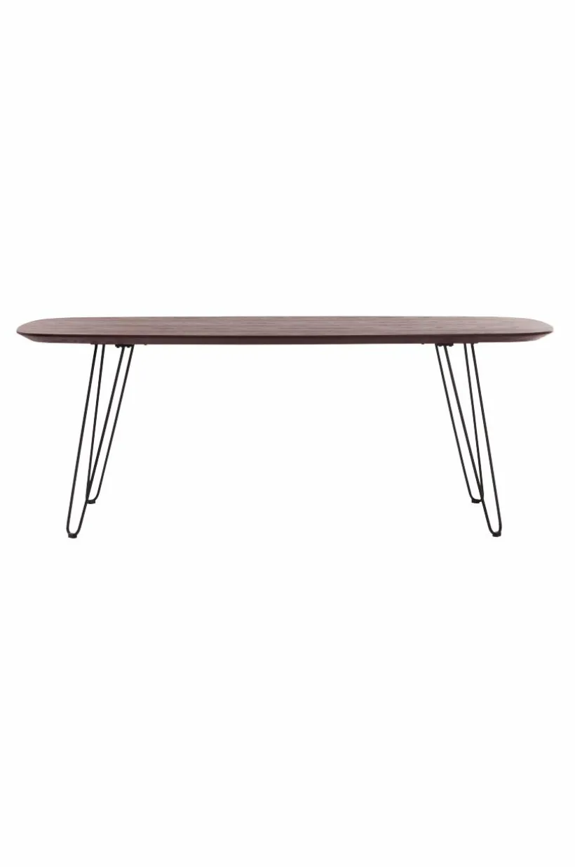 Rektangulärt bord i stilren design. Natur och svart bord har bordsskiva i askfaner med fin ådring och svartlackerade järnben. Det vita bordet har bordsskiva i lackerad MDF och kromade ben av rostrfritt stål. De snyggt formade metallbenen tillsammans med bordsskivans form ger bordet en svävande och nätt känsla trots att det är rejält i storleken. Viss montering krävs. Monteringsanvisning medföljer. Skruvar medföljer.