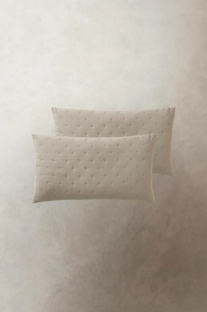 2-pack kuddfodral sytt i mjuk polyester som tvättats för att få en skön känsla. Kuddfodralen har enkel quiltning av broderade små kryss som bildar ett diskret mönster på framsidan. Tyget har en lätt vaddering som hålls på plats av quiltningen. Baksidan är slät. Dold dragkedja på baksidan.