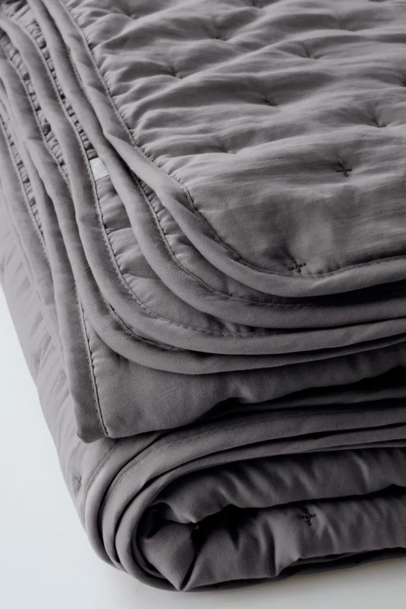 Överkast för enkelsäng, sytt i mjuk polyester som tvättats för att få en skön känsla. Överkastet har enkel quiltning av broderade små kryss som bildar ett diskret mönster vilket ger liv och samtidigt håller fyllningen på plats. Bandkantning runt om förstärker den mjuka stilen. Överkastets baksida är av polyester. Obs! Kuddfodral medföljer ej, köps separat.