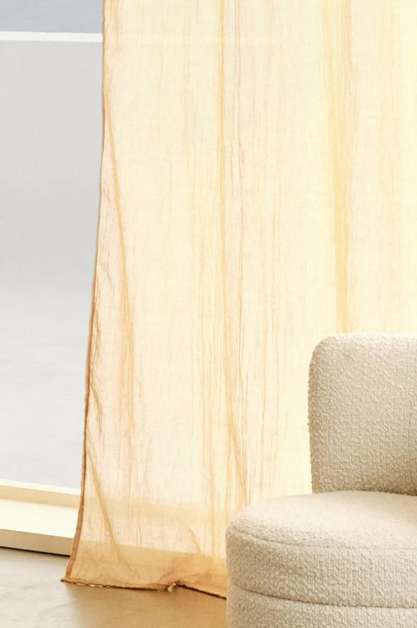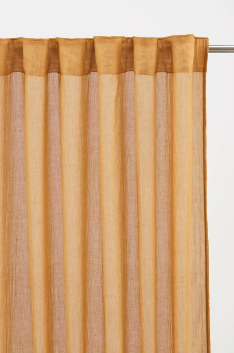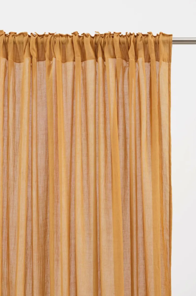 Två gardinlängder i mjuk bomullsblandning som ger ett fint fall. Påsytt multifunktionsband upptill gör att gardinen kan hängas upp med fingerkrokar, kanal samt dold hälla.