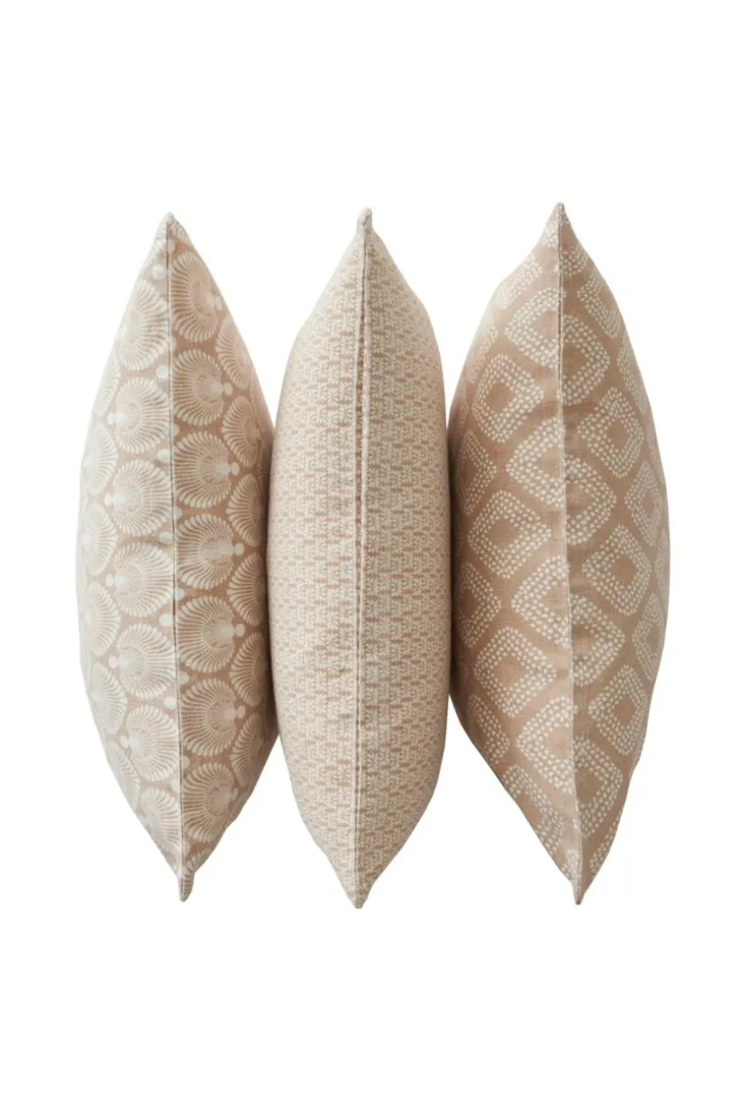 3-pack kuddfodral i bomull med tryckt mönster. Charmigt småmönstrat med en härlig lantlig känsla som passar in i många olika stilar. De tre kuddfodralen har olika mönsterbild i vitt på färgad botten. Dragkedja i nederkant.