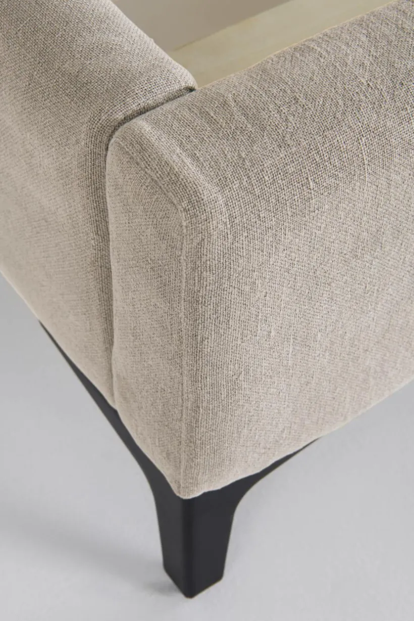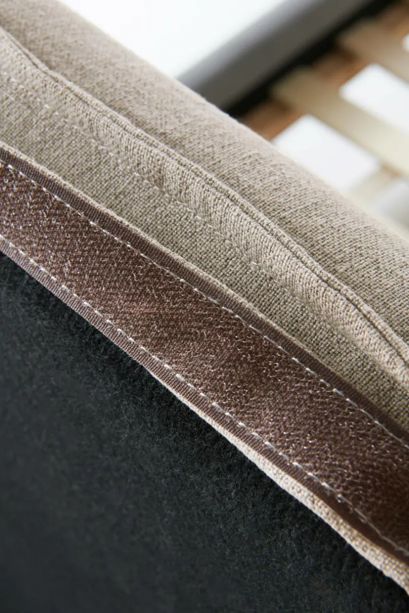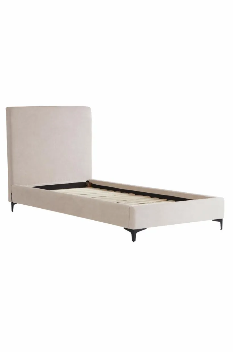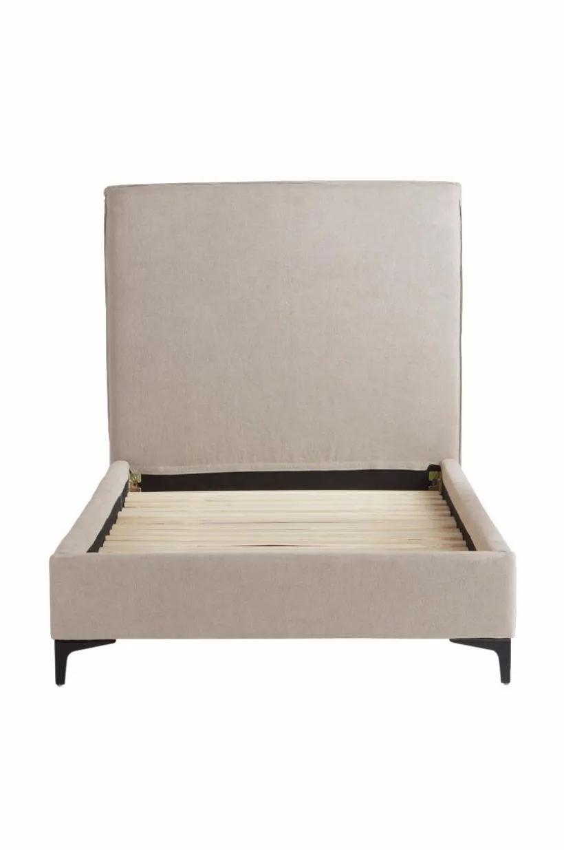 Barnsäng med klädsel i luftigt linne, stomme av plywood och mjuk skumfyllning av polyuretan. En mjuk och mysig säng som passar perfekt när ditt barn har vuxit ur juniorsängen. Används med madrass i storleken 90×200 cm. Madrass medföljer ej.