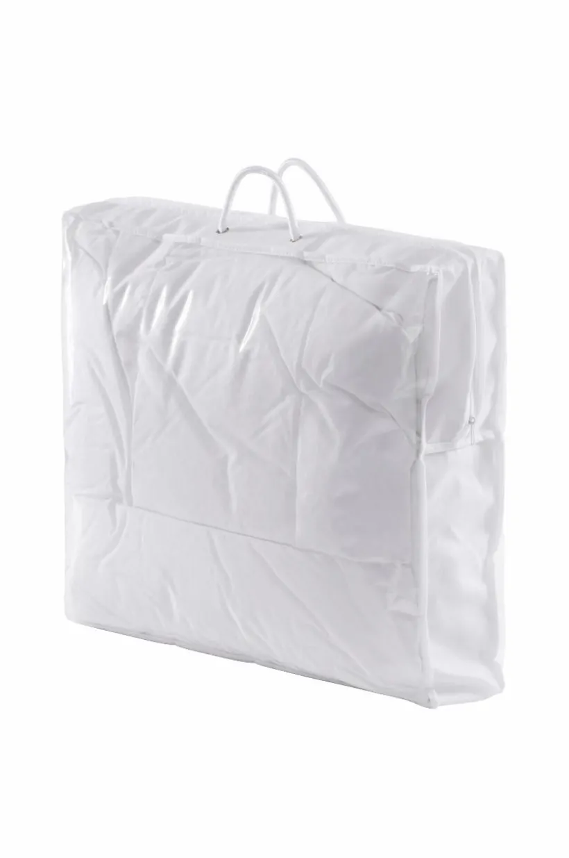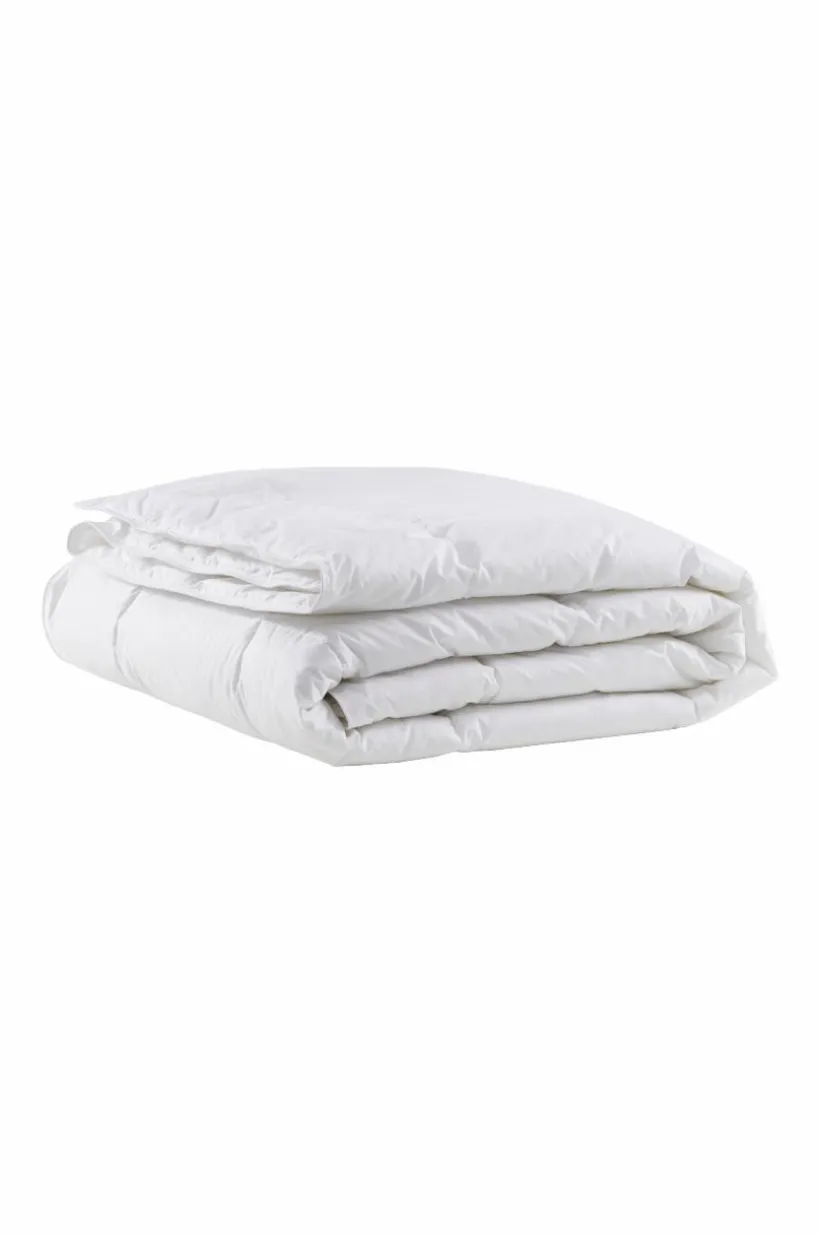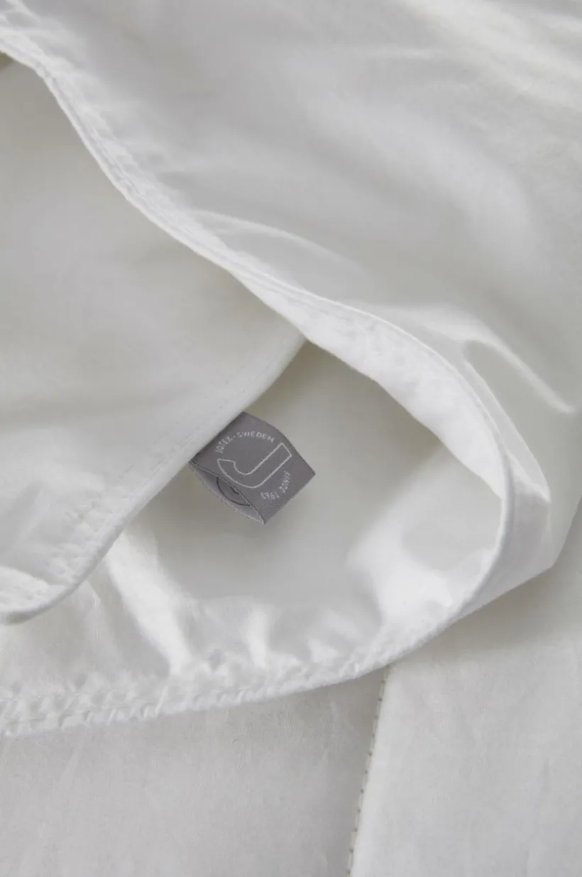 Svalt täcke för enkelsäng i mjuk ekologisk bomull. Fyllning av immitationsdun som ger en härlig känsla av dun, men har polyesterns fördelar som lätt att hålla rent och fräscht. Täcket är rutquiltat och har sydda mellanväggar för att hålla fyllningen på plats. Täcket är förkrympt och krymper därför inte i tvätten. Det levereras i en praktisk tygväska. Vikt 750 gram.