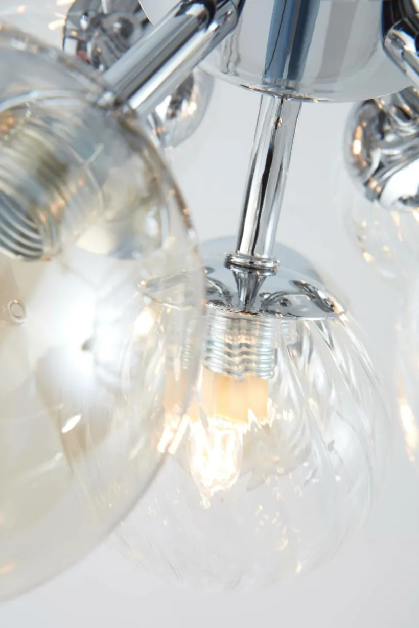 Taklampa med stomme av järn med kromad finish och dekorativa glaskupor i klarglas som sprider ett mysigt sken när lampan lyser. Takplugg ingår ej p.g.a. nya EU-regler. Den finns att köpa separat och heter ROOF EARTH takplugg.
