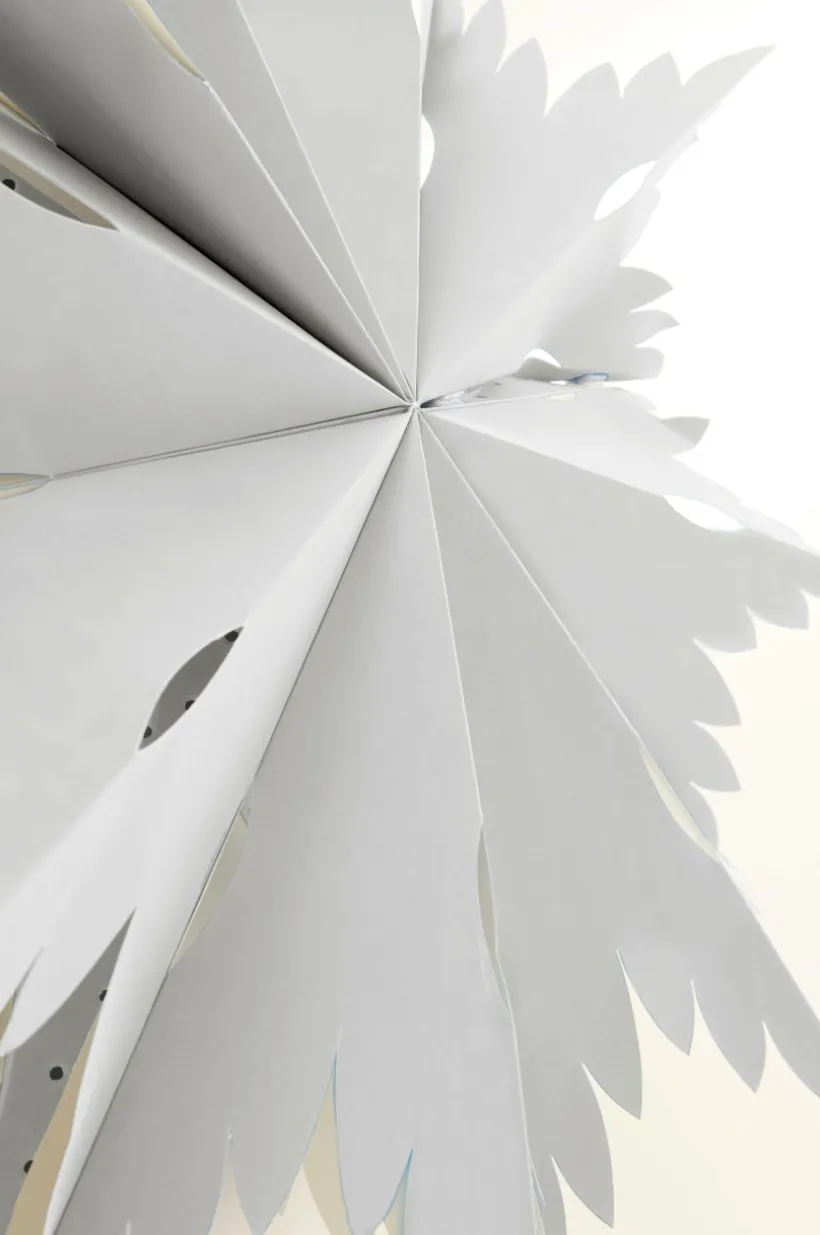 Julstjärna av papper, i vacker form som inspirerats av en fint formad snöstjärna. ELLIORA är stor och pampig och lyser stämningsfullt i vintermörkret. Lamphållare med vit plastsladd ingår. Viss montering krävs. Monteringsanvisning medföljer.