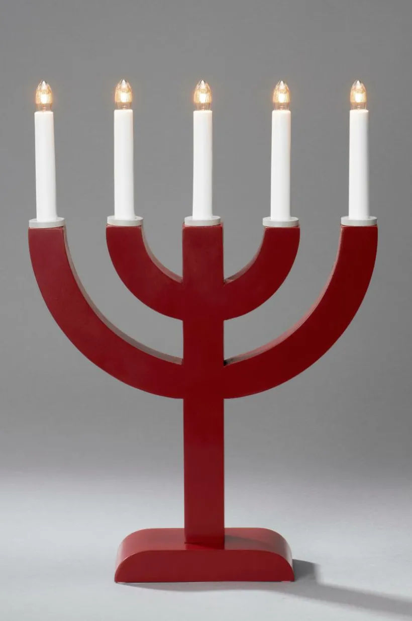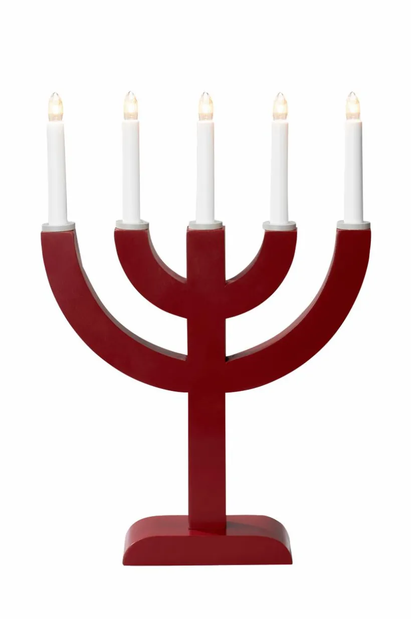 En 5 armad elljusstake i lackerat trä. Varmvita lampor.Anslutningssladd på 1,7 meter med sladdströmbrytare för manuell avstängning/påslagning. Höjd 41,7 cm och bredd 29 cm.