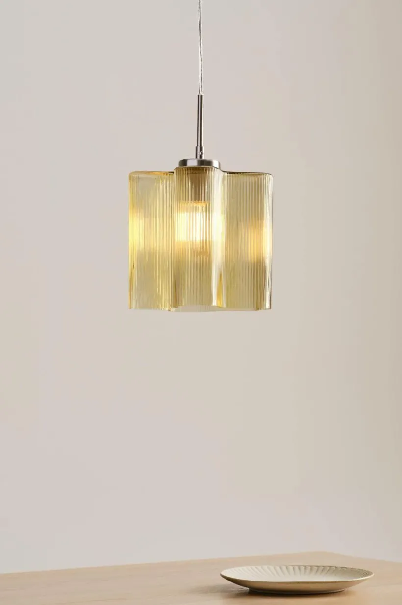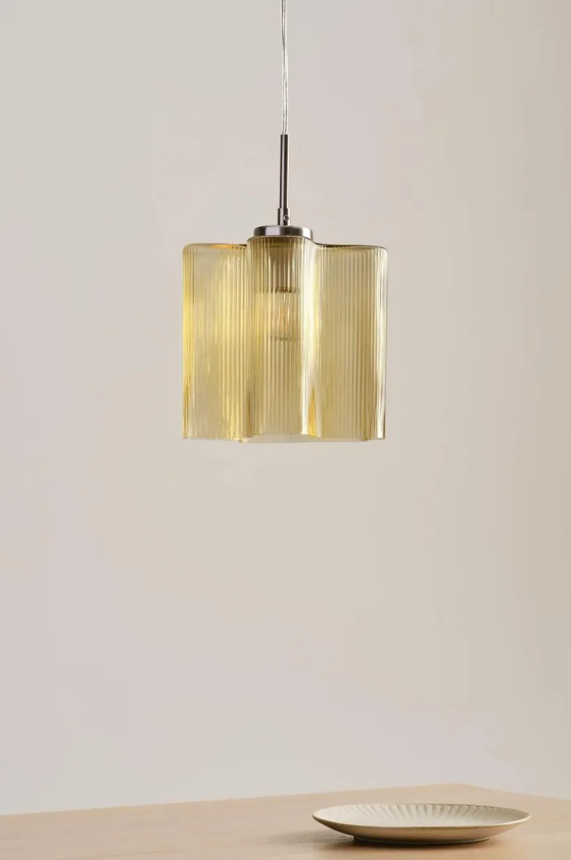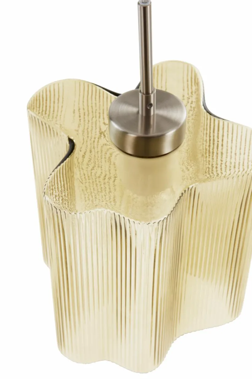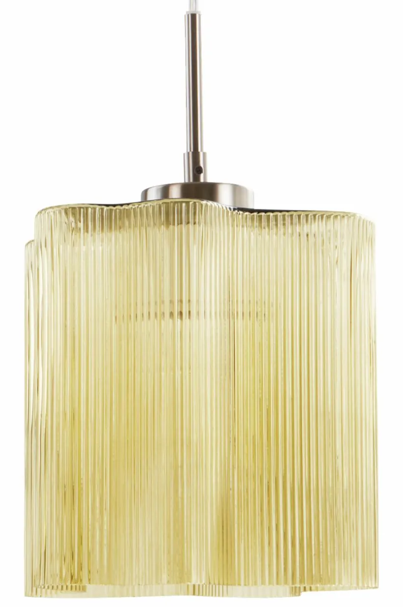 Taklampa av glas och formen är som en blomma, när naturen får inspirera blir det fint. Lampan har nedåtriktat ljus kombinerat med belysning genom glaset. Glaset har strukturränder som dämpar ljuset och ger vackert sken. EUROPA är mycket dekorativ över ett matbord, eller varför inte två eller tre på rad om matbordet är lite längre? Lampans fäste är av metall och sladden är transparent.