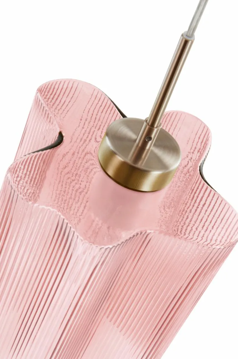 Taklampa av glas och formen är som en blomma, när naturen får inspirera blir det fint. Lampan har nedåtriktat ljus kombinerat med belysning genom glaset. Glaset har strukturränder som dämpar ljuset och ger vackert sken. EUROPA är mycket dekorativ över ett matbord, eller varför inte två eller tre på rad om matbordet är lite längre? Lampans fäste är av metall och sladden är transparent.