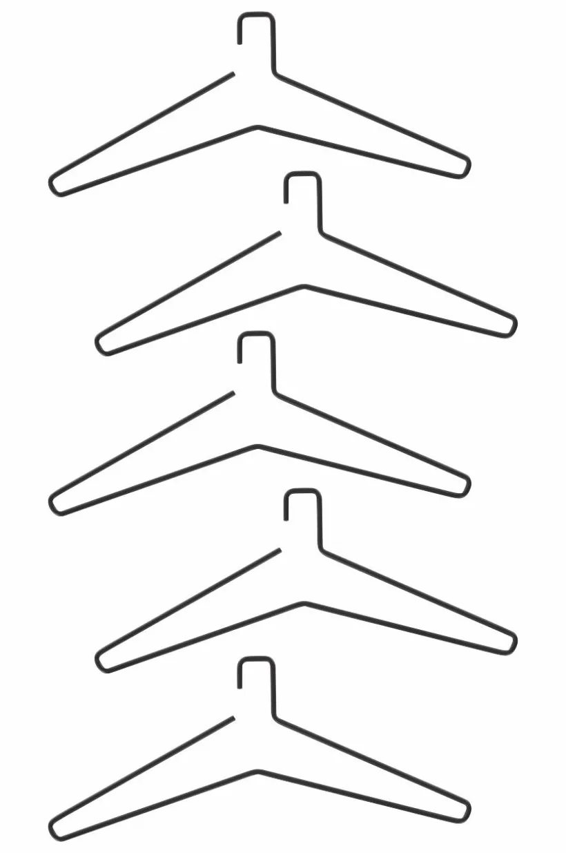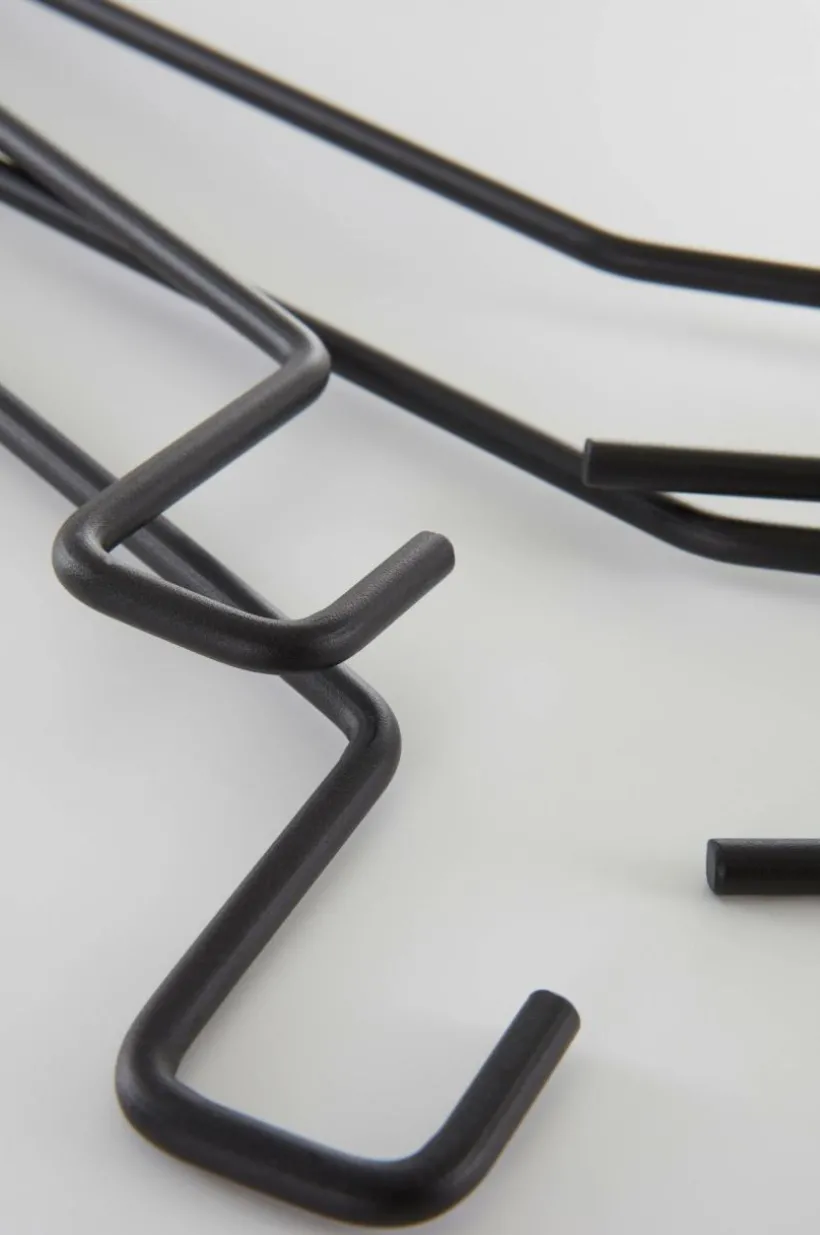 5-pack galgar av pulverlackerad stål. Galgarna är snygga att ha på en hatthylla i hallen eller på en klädställning i sovrummet.