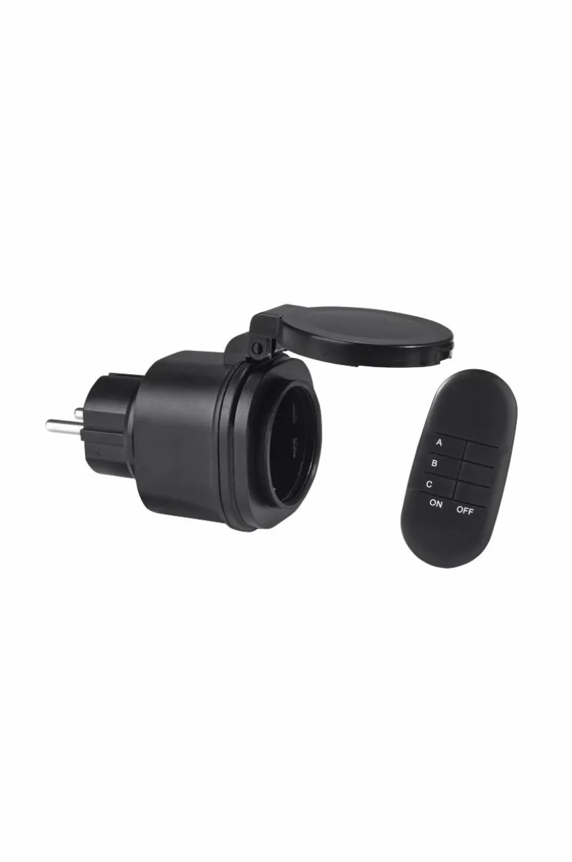 Fjärrströmbrytare för utomhusbruk. Koppla enkelt in uttagsadaptern i eluttaget på utsidan av huset/fastigheten och styr enheten med en fjärrkontroll. Fjärrkontrollen styr adaptern som sitter i uttaget och du kan nu enkelt koppla samman din utebelysning, ljusslinga och utetaklampor som har en vanlig grenkontakt. Max 3000W. Räckvidd: 25 m mellan fjärrkontroll och sockel.