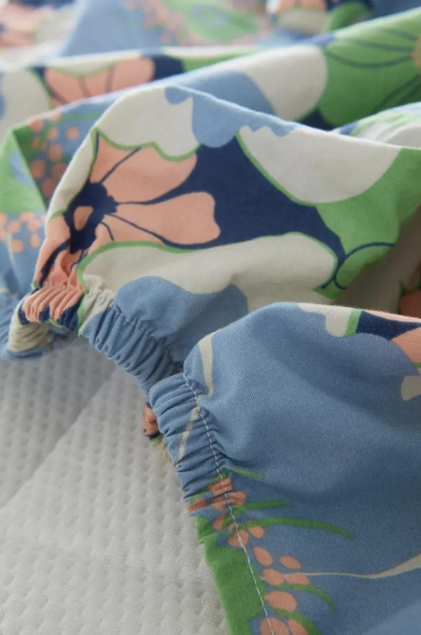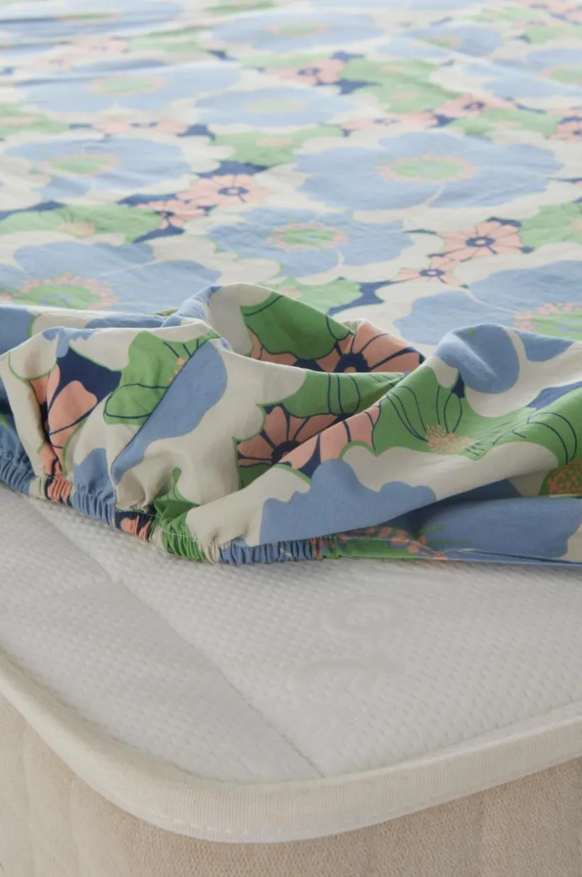 FRIDA påslakan ger barnrummet ett stänk av retrocharm. Det är tillverkat av mjuk ekologisk bomullspercale och prytt med lekfulla tryck och passar perfekt ihop med den matchande vuxenversionen för en sammanhållen familjestil. Komfort för de minsta möter tidlös design.