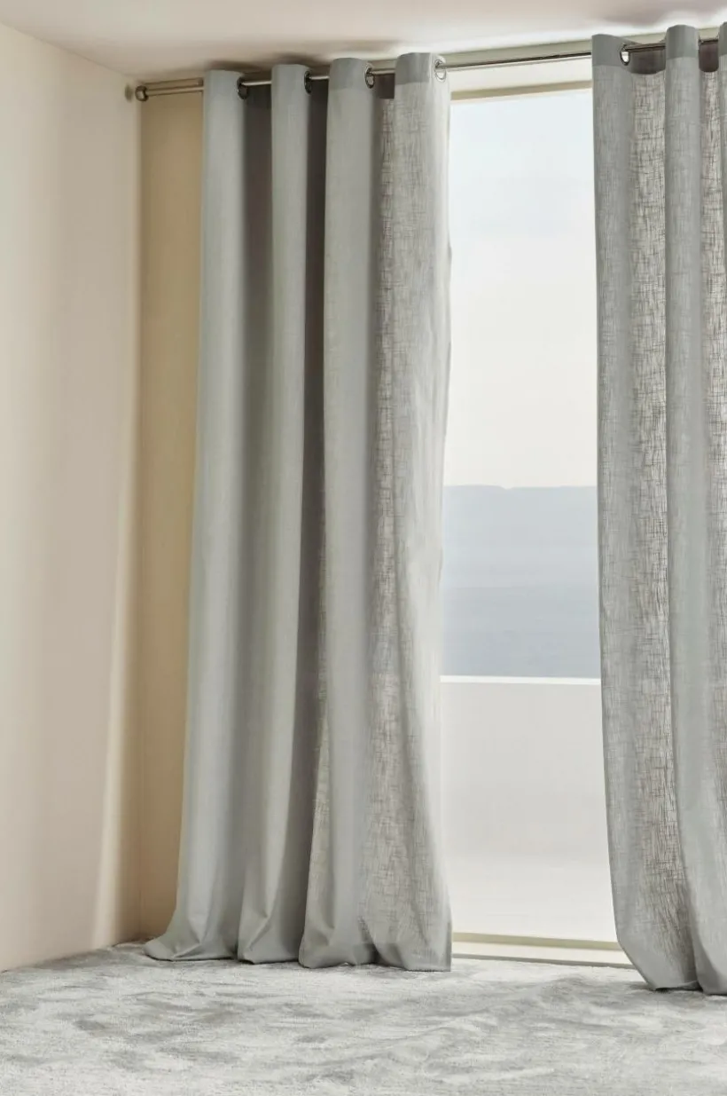 2-pack enfärgade öljettlängder i bomull. 8 st metallöljetter per längd. Träs enkelt på en gardinstång.
