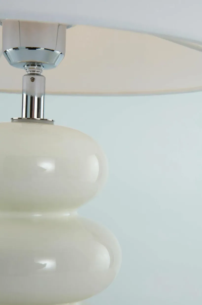 Bordslampa med lampfot av keramik som matchats med en rak textilskärm av polyester/bomull. HONFLEUR är en stilren lampa med charm. Lampskärmen har metallstomme och lamphållaren är av kromad metall. Transparent sladd med strömbrytare på sladden.
