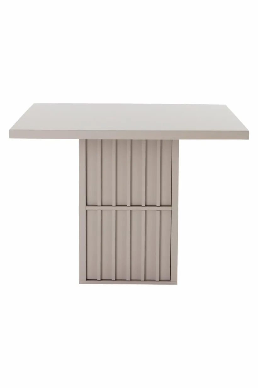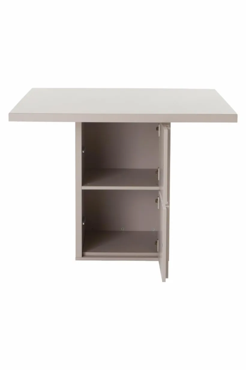 Matbordet IKSEON är kvadratiskt med en pelarfot som rymmer förvaring. Ena sidan av foten har två dolda dörrar med pushfunktion och mjukstängande gångjärn. Foten har alltså två fack, ett upptill och ett nertill, hyllplanet är ej flyttbart. Viss montering krävs. Monteringsanvisning medföljer.