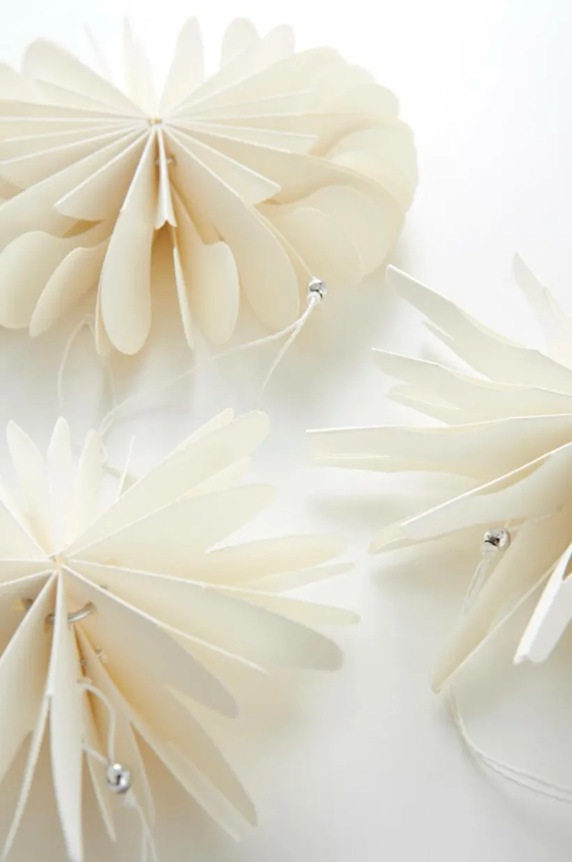 3-pack med handgjorda stjärnor av papper. Stjärnorna är olika och alla har en ögla upptill så du kan hänga dem i ett fönster, i julgranen eller där du vill dekorera lite extra. Hantverket gör varje dekoration unik. Stjärnorna kommer i en pappersask.