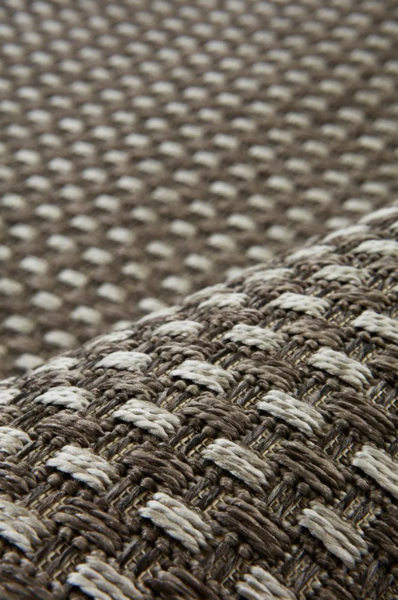 Slätvävd matta av polypropylen, mattan har vävts med olika färg på trådarna som ger ett livfullt och samtidigt diskret mönster. Mattan ger en lyxig känsla till din uteplats. Den tåliga kvalitén och det faktum att den tål vatten gör att mattan passar i många rum där den utsätts för lite mer slitage. Mattan är mycket lättskött. Eftersom mattan tål vatten och inte möglar kan den med fördel även användas utomhus. Tjocklek: 0,6 cm. 1450 g/m².