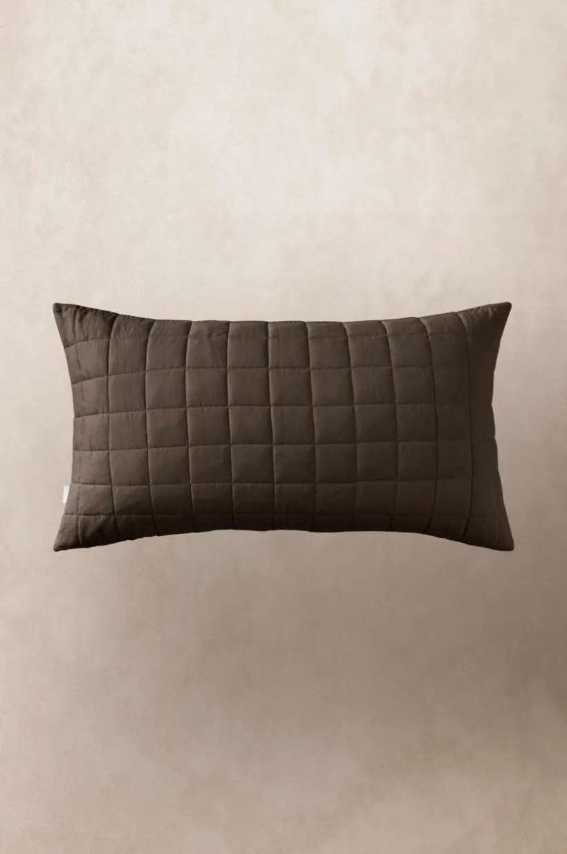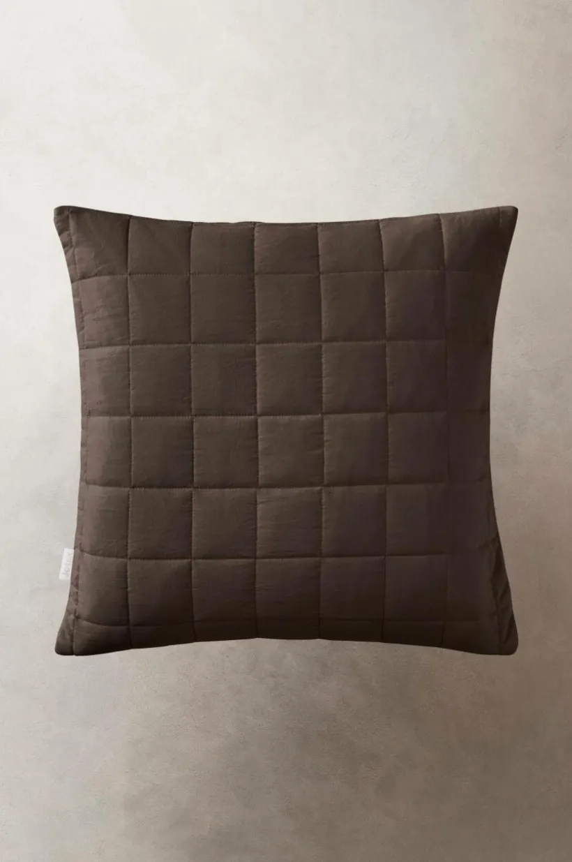 1-pack enfärgade kuddfodral i mjuk, tvättad mikrofiberkvalité av polyester. Kuddfodralen får sitt diskreta rutmönster av quiltsömmarna som håller polyesterfyllningen på plats. En söm följer kanten runt om. Dold dragkedja i nederkant.