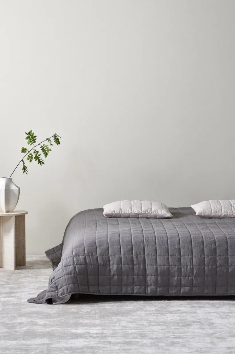 Enfärgat överkast i mjuk, tvättad mikrofiberkvalité av polyester. Överkastet får sitt diskreta rutmönster av quiltsömmarna som håller polyesterfyllningen på plats. Det har rundade hörn och en söm följer kanten runt om. JARA är ett smidigt överkast, varken tungt eller klumpigt utan helt enkelt lätt att bädda med.