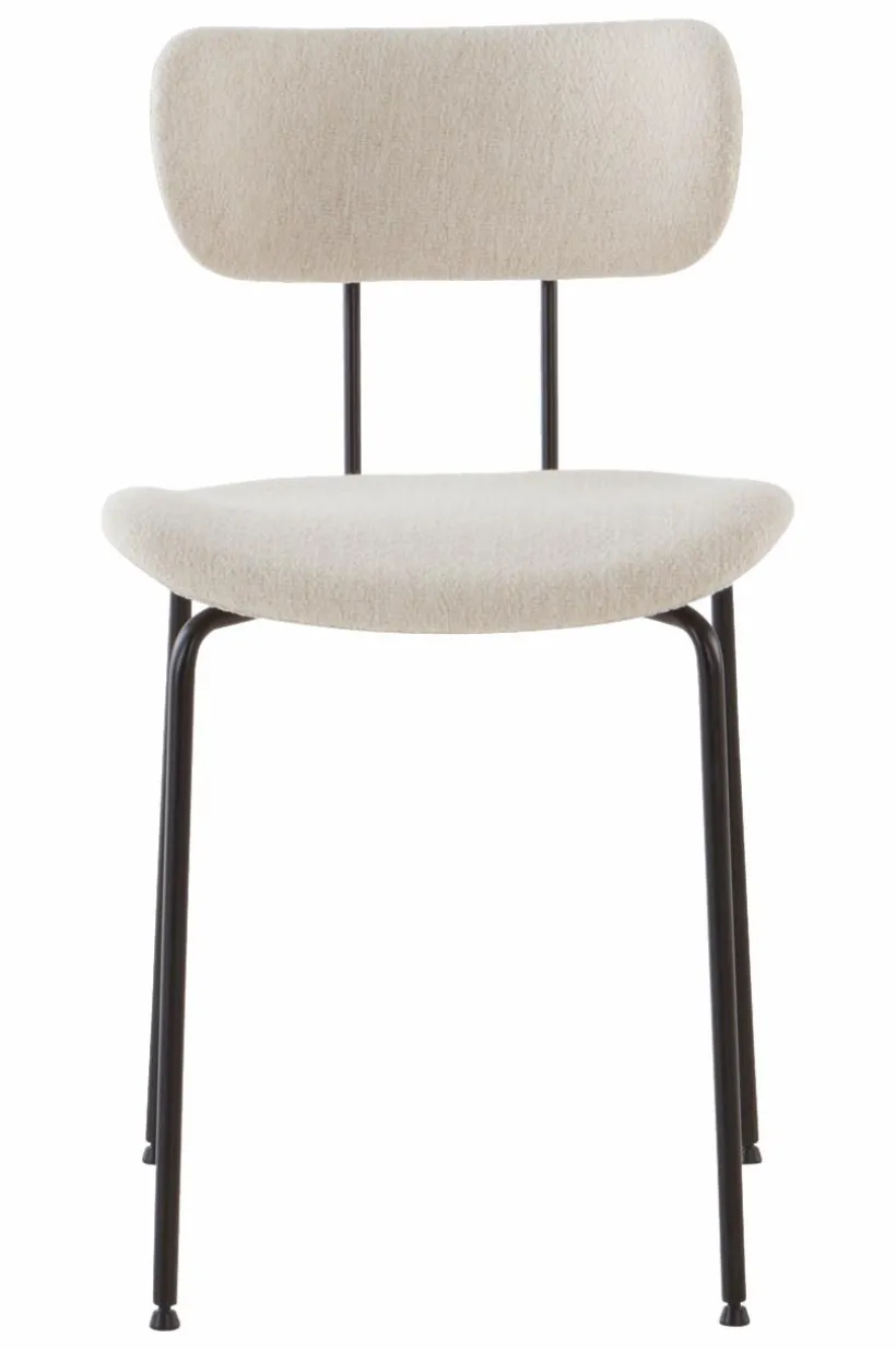 2-pack stolar med sits och ryggstöd som är lätt vadderade och textilklädda, benen är av pulverlackerad stål. Tyget är lätt melerat och har fin struktur. Det är mycket slitstarkt med Martindale på 40000. Med smalt, skålat ryggstöd blir stolen nätt och lättplacerad. Viss montering krävs. Monteringsanvisning medföljer.