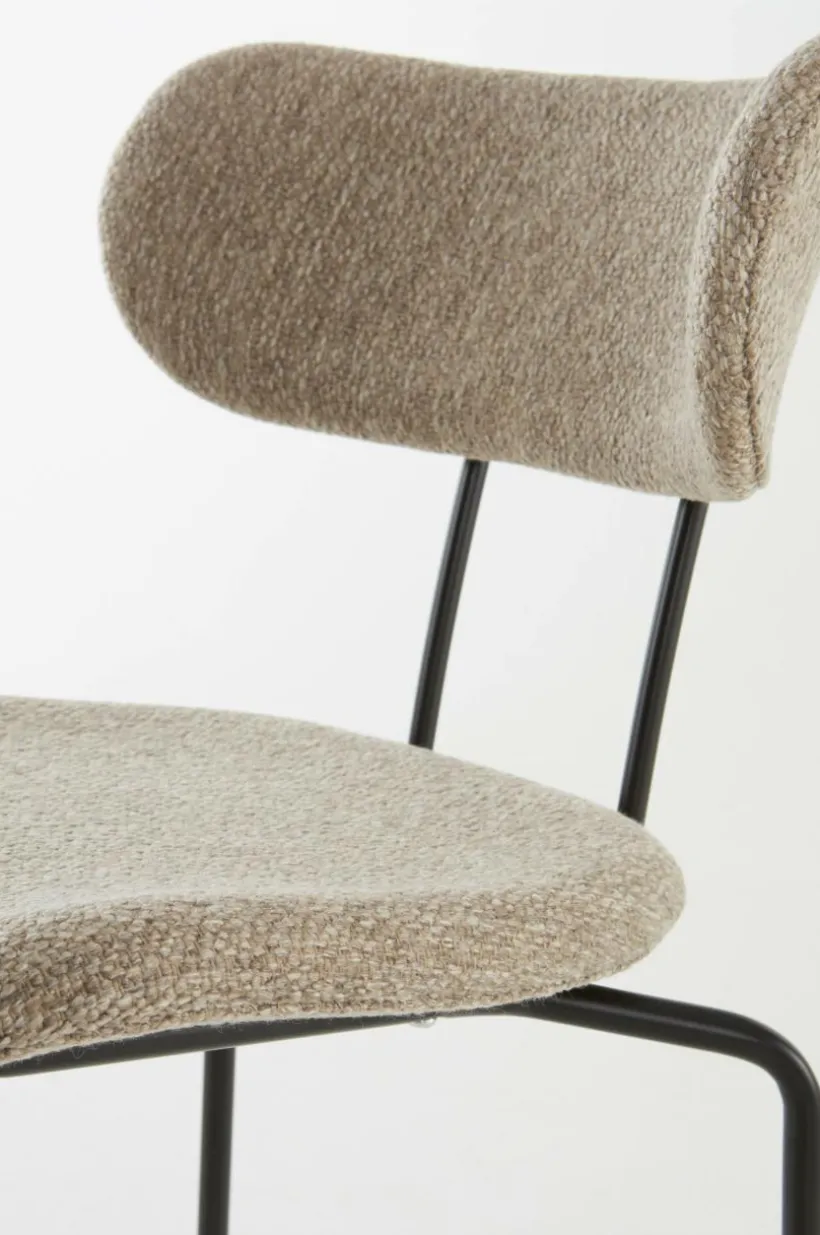 2-pack stolar med sits och ryggstöd som är lätt vadderade och textilklädda, benen är av pulverlackerad stål. Tyget är lätt melerat och har fin struktur. Det är mycket slitstarkt med Martindale på 40000. Med smalt, skålat ryggstöd blir stolen nätt och lättplacerad. Viss montering krävs. Monteringsanvisning medföljer.