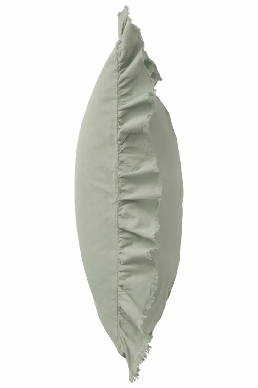 Örngott av tvättad bomull med mjuk känsla. Bomull är behagligt att bädda med och upplevs svalt och skönt mot huden. JINN har en lätt fransig volangkant runt om. Trådtäthet på 144 tc. (Trådtätheten talar om antalet trådar, thread counts, per kvadrattum i ett tyg. Ju högre trådtäthet desto högre kvalité.)