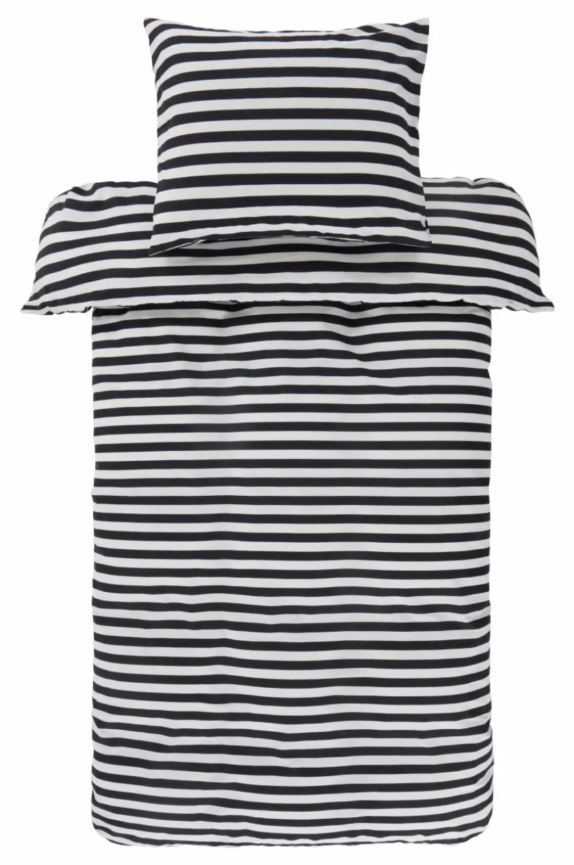 Randigt påslakanset i två delar, ett påslakan och ett örngott av bomull. Den tvärgående randningen är tryckt i fräscha, somriga färger och på båda sidor av örngott och påslakan. Bomull är en mjuk och behaglig kvalité som känns sval mot huden. Öppning i övre hörnen på påslakanet, som underlättar att trä påslakanet över täcket. Trådtäthet på 144 tc. (Trådtätheten talar om antalet trådar, thread counts, per kvadrattum i ett tyg. Ju högre trådtäthet desto högre kvalité. Med undantag för linne som ofta vävs glesare för att få den rätta känslan.)