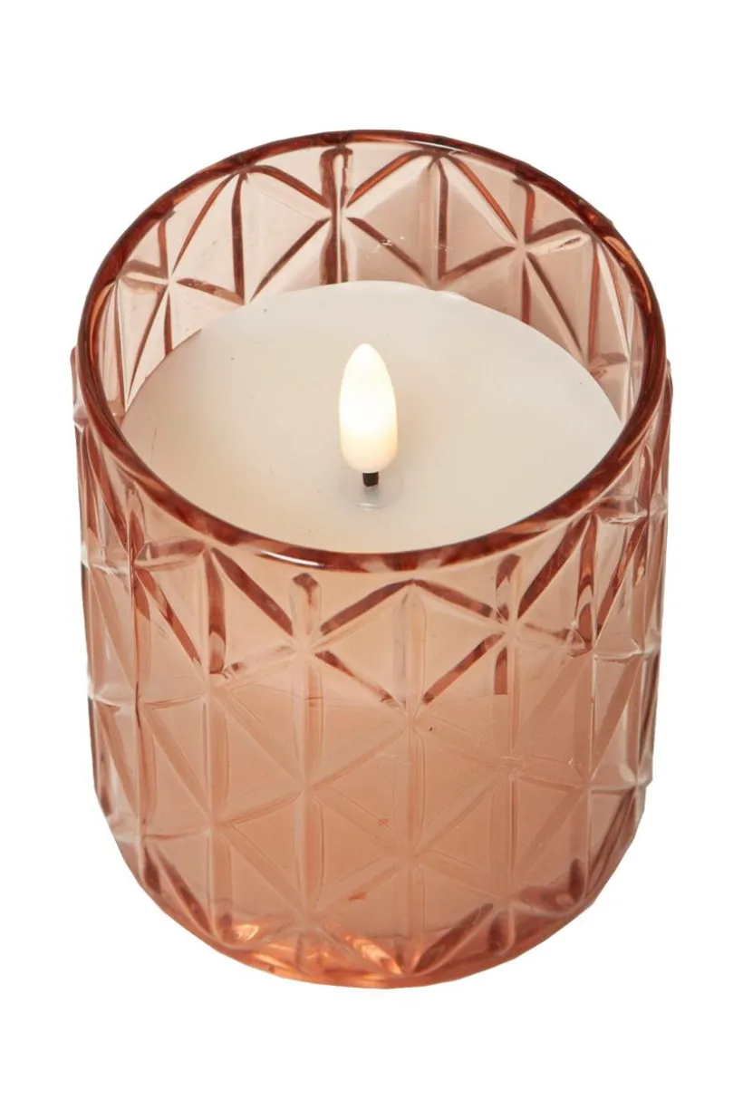 Flamme romb med glaslock som har ett romb-format mönster, inuti finns ett vaxljus. Ljuset är ca 8 x 10 cm stort. Detta elektriska ljus blir en vacker dekoration, både ensamt och i grupp tillsammans med andra ljus från vår serie flamme. Det har en timerfunktion och när strömbrytaren är i timerläge lyser ljuset i ca 30 dagar med en vacker realistisk låga i varmvitt. Den drivs av 2 aa-batterier, dessa ingår inte.