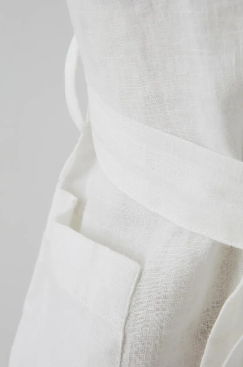 Badrock av naturligt och behagligt linne. Den sköna linnekvalitén har tvättats för att bli härligt mjuk och skön. Mysig modell knytskärp i midjan och två framfickor. Vikt 160 g/m².