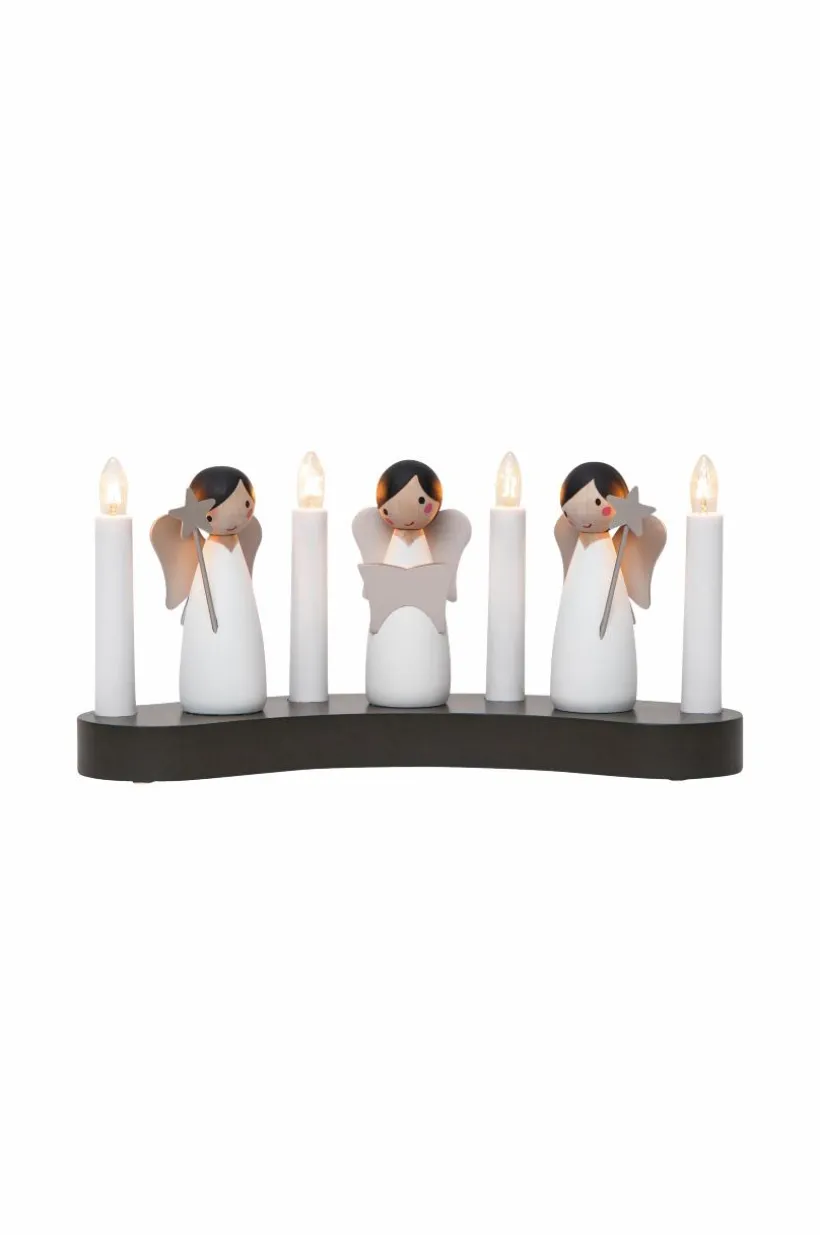 Änglakör träljusstake med 4 ljuskällor. Ljuskälla ingår. En dekorativ ljusstake som sprider härlig julstämning i hemmet. Sladd med strömbrytare. Total effekt 12W. Lampans effekt 12W.