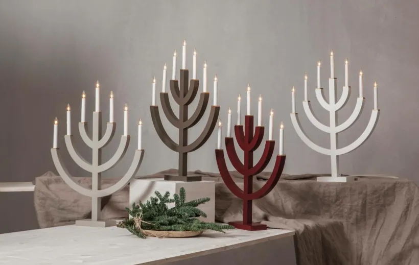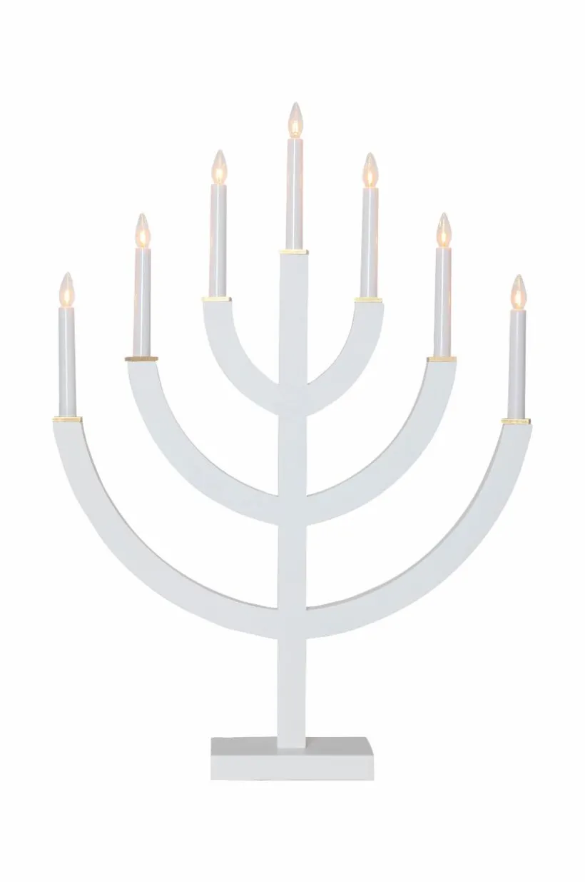 Stämningsfull adventsljusstake tillverkad i trä med målade träbrickor som dekoration. Ljusstaken är både moderna och traditionell och passar utmärkt i ett fönster eller på en skänk. Julen blir något alldeles extra med stämningsfulla Anno som dekoration. Total effekt 21 W. Ljuskällans effekt 3 W.