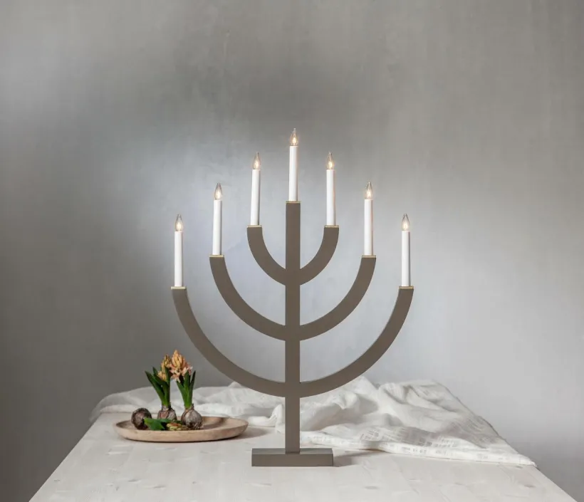 Stämningsfull adventsljusstake tillverkad i trä med målade träbrickor som dekoration. Ljusstaken är både moderna och traditionell och passar utmärkt i ett fönster eller på en skänk. Julen blir något alldeles extra med stämningsfulla Anno som dekoration. Total effekt 21 W. Ljuskällans effekt 3 W.