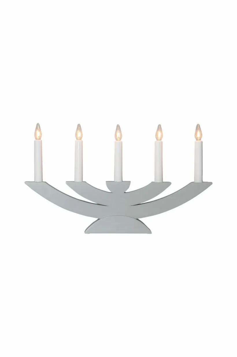 En elegant träljusstake med 5 ljus, vit färg. Placera adventsljusstaken i ett fönster eller på en skänk. Skapar en härlig julstämning i både hem och offentlig miljö. Total effekt 21 W. Ljuskällans effekt 3 W.