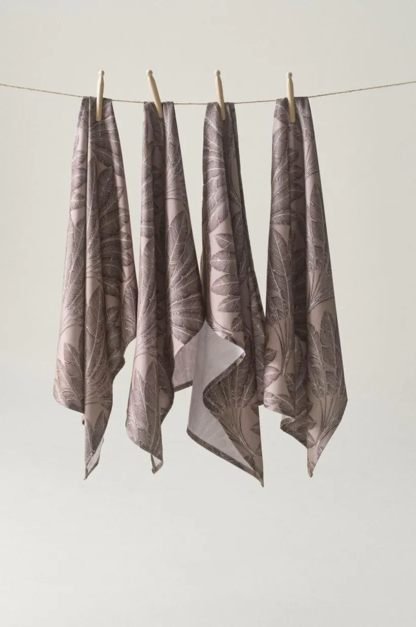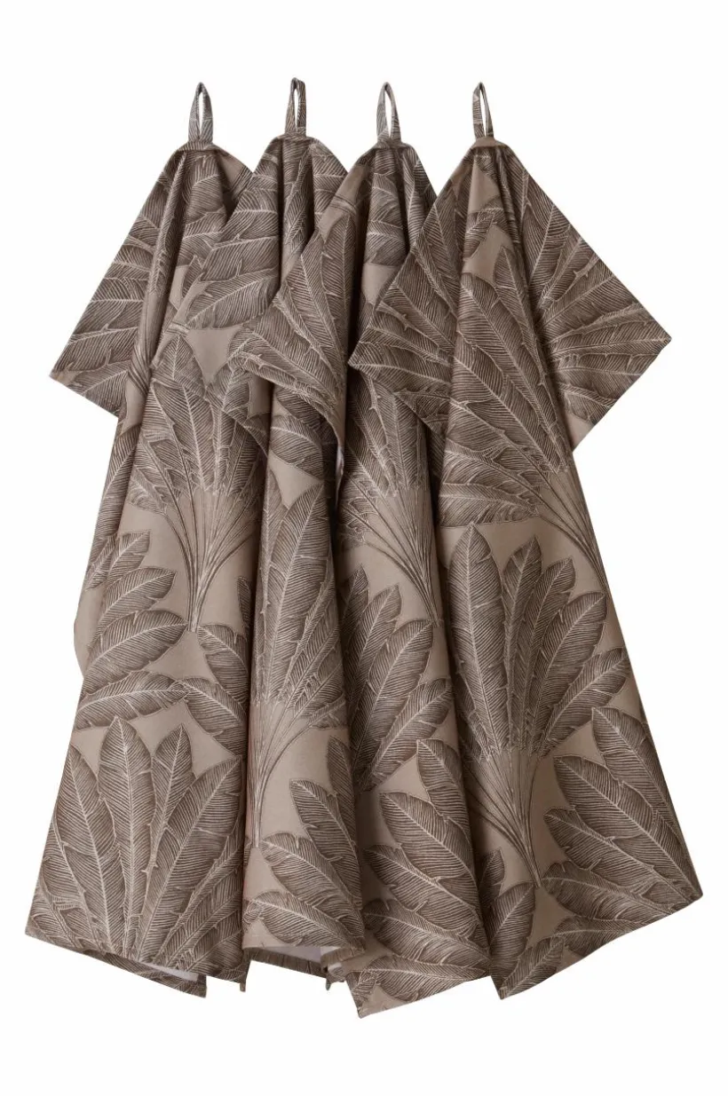 4-pack kökshanddukar av polyester med ett suveränt mönstertryck som skapats av fjädrar. Trycket går i en mörkare nyans än bottenfärgen och mönstret andas både spänning och harmoni, med en fläkt av retro.
