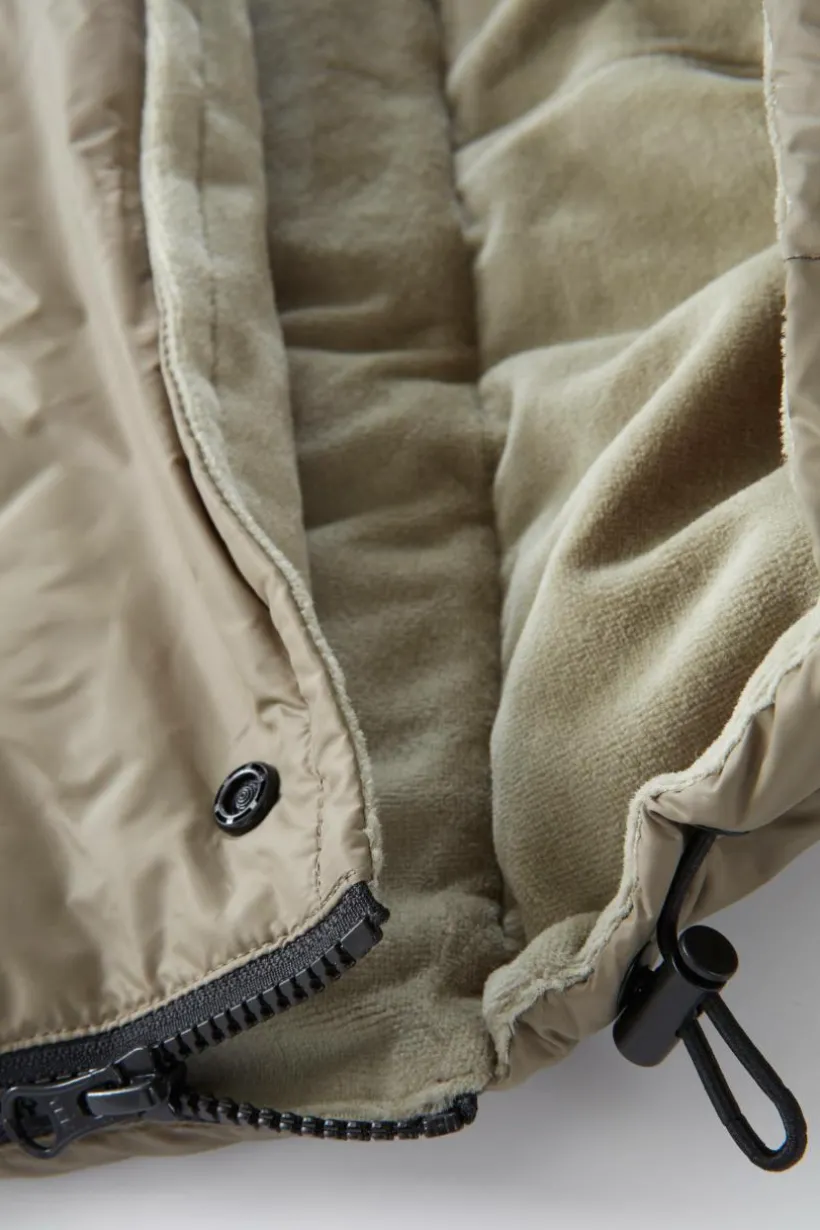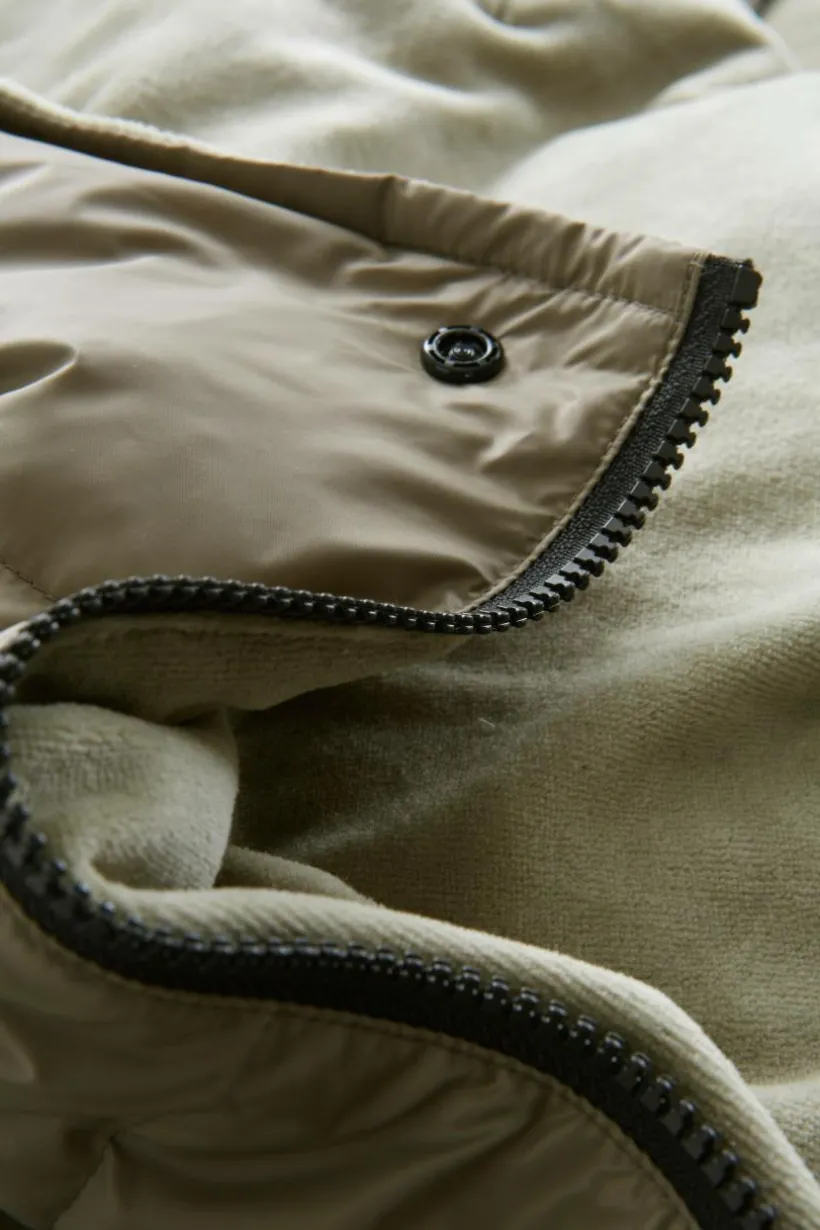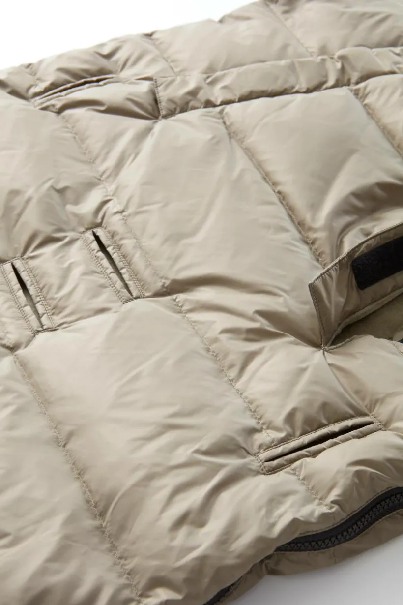 Material: Yttertyg: 100% polyamid. Foder: 80% bomull och 20% polyester. Fyllning: 80% ankdun och 10% fjäder. Yttertyg fyllning 100% polyester. YKK-dragkedjor.