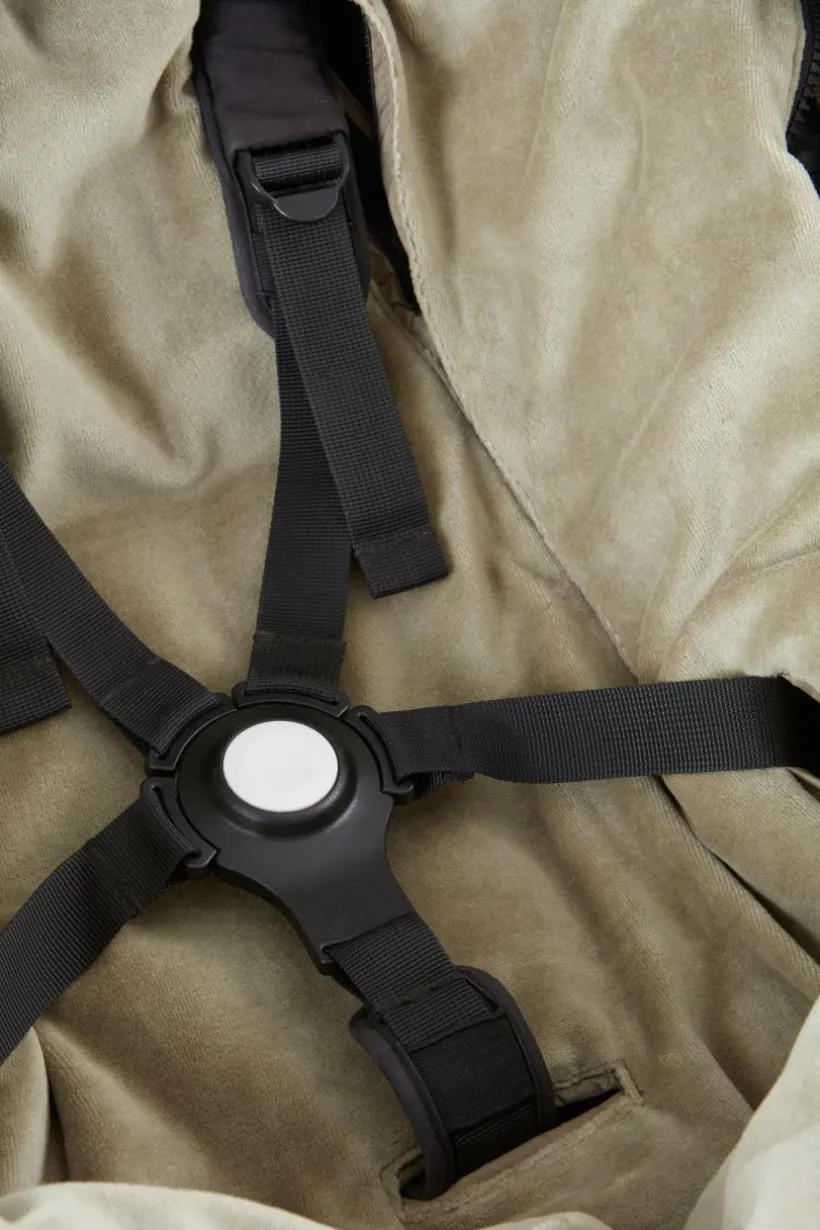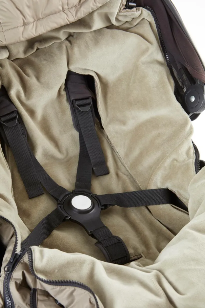 LOUISIAN är en varm och gosig åkpåse med fyllning av dun. Åkpåsen passar barnvagnar med eller utan bälte och den passar till både 3-punkts- och 5-punktsbälte tack vare de anpassade hålen i ryggen. Med åkpåse är du säker på att din bebis slipper frysa och skulle det bli för varmt kan du öppna upp den. LOUISIAN har yttertyg av polyamid som har fått en vattenavvisande behandling som är fluorkarbonfri. Tyget är också vindavvisande samtidigt som det andas. Åkpåsen är fodrad med mjuk fleece av bomullsmix. De lättåtkomliga dragkedjorna som öppnar åkpåsen är i fin kvalité, YKK, och de är tvåvägs. Du kan lufta perfekt och öppna upp helt när du lägger ner och tar upp barnet. Fyllningens vikt 100 g.