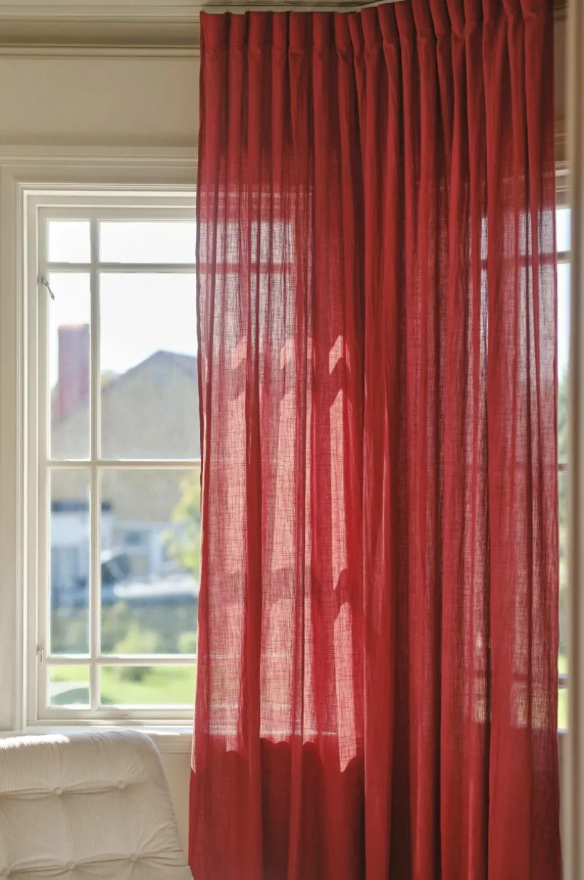 Förläng livstiden på gardinerna genom att dammsuga dem försiktigt med mjukt munstycke med jämna mellanrum. På så vis undviker du att damm och smuts tränger in i tyget. Dessutom behåller dina gardiner färgen längre. Fläckar tas bort med varmt vatten på en ljus trasa. Dutta fläcken försiktigt med trasan, steama och låt torka.