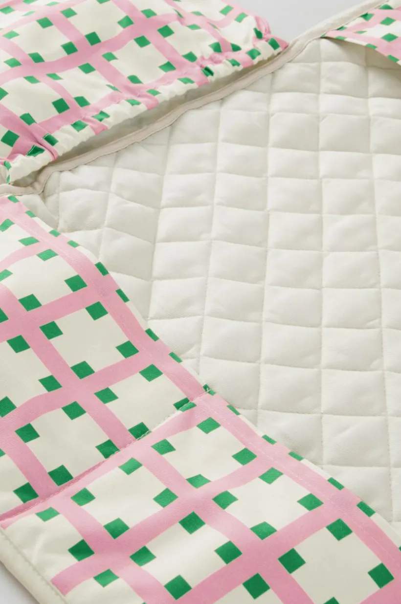 Skötbädden LUTZ är snygg och mångsidig. Den är hopfällbar och har ett handtag, vilket gör den perfekt för hemma eller på resan. Säkras med rem och knapp. Inuti finns sex fickor (14×21 cm) och en bottenficka (26X18 cm), perfekt för att organisera babysaker. Tillverkad av bomull med vattenavvisande beläggning och stoppning i polyester. Enkel att handtvätta.