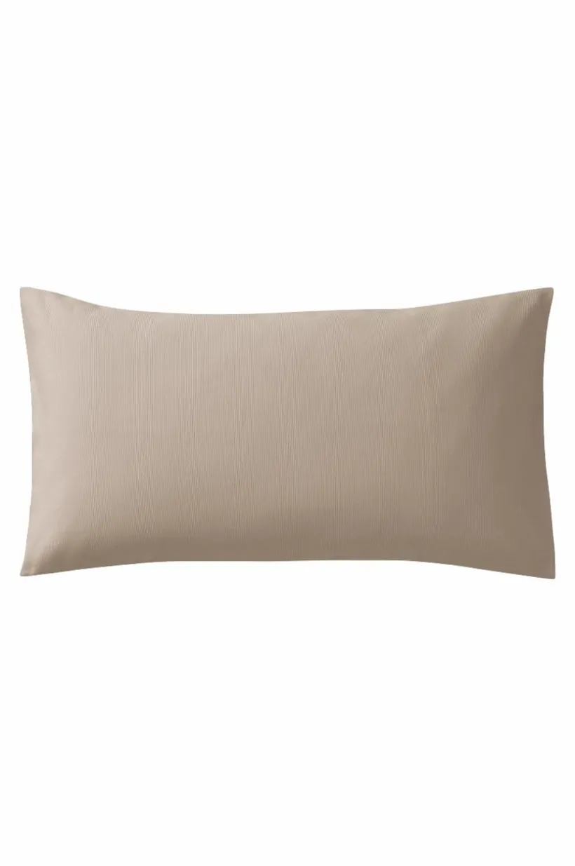 1-pack kuddfodral i smidigt, stickad bomull, bekvämt och tidlöst. Sticksättet ger ett smalrandigt mönster ton i ton, med diskret, ribbad struktur. Det behagliga tyget har en gramvikt på 400 g/m². Kuddfodralet har omlottöppning.
