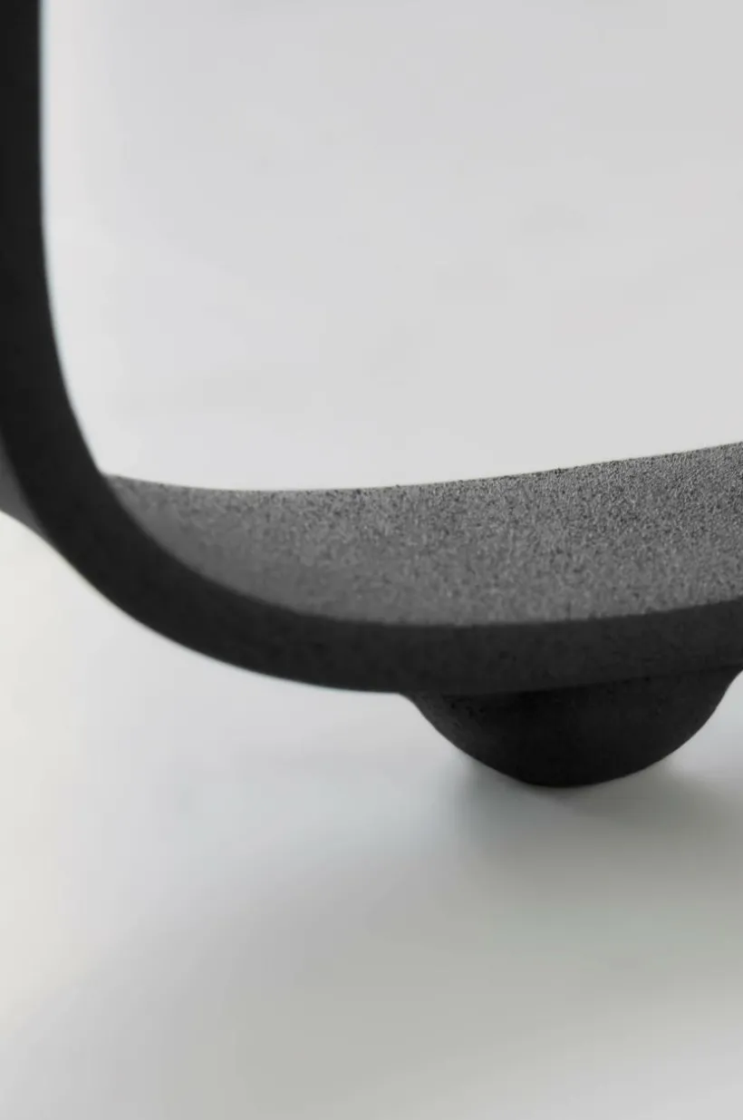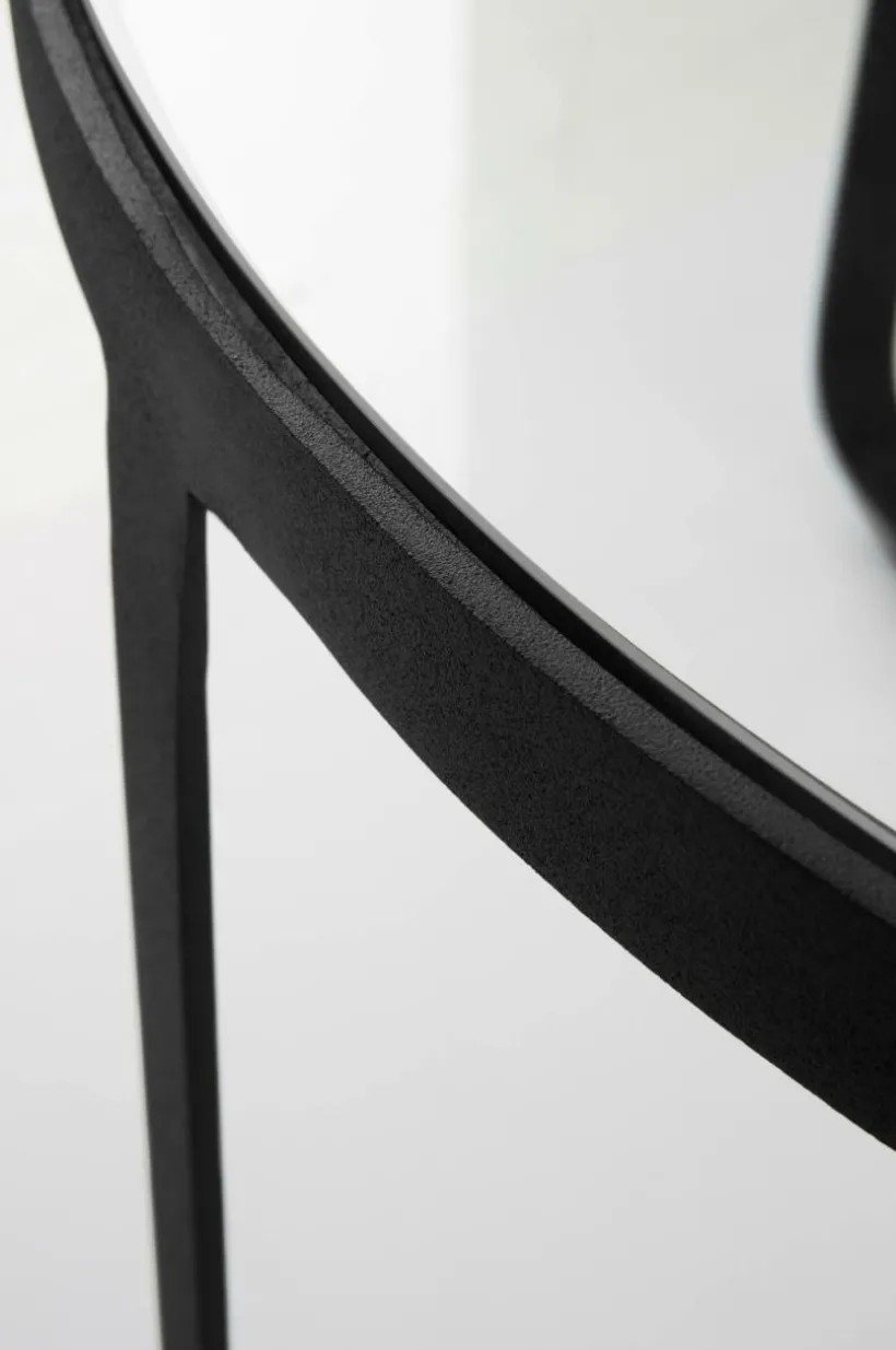 Runt glasbord med fint underrede av järn. MALBUN har en fin detalj i att glasskivan är nedfälld i ramen. Det fyrbenta underredet skapar ett kryss under bordet. Underredet är målat och har matt yta med lätt struktur.