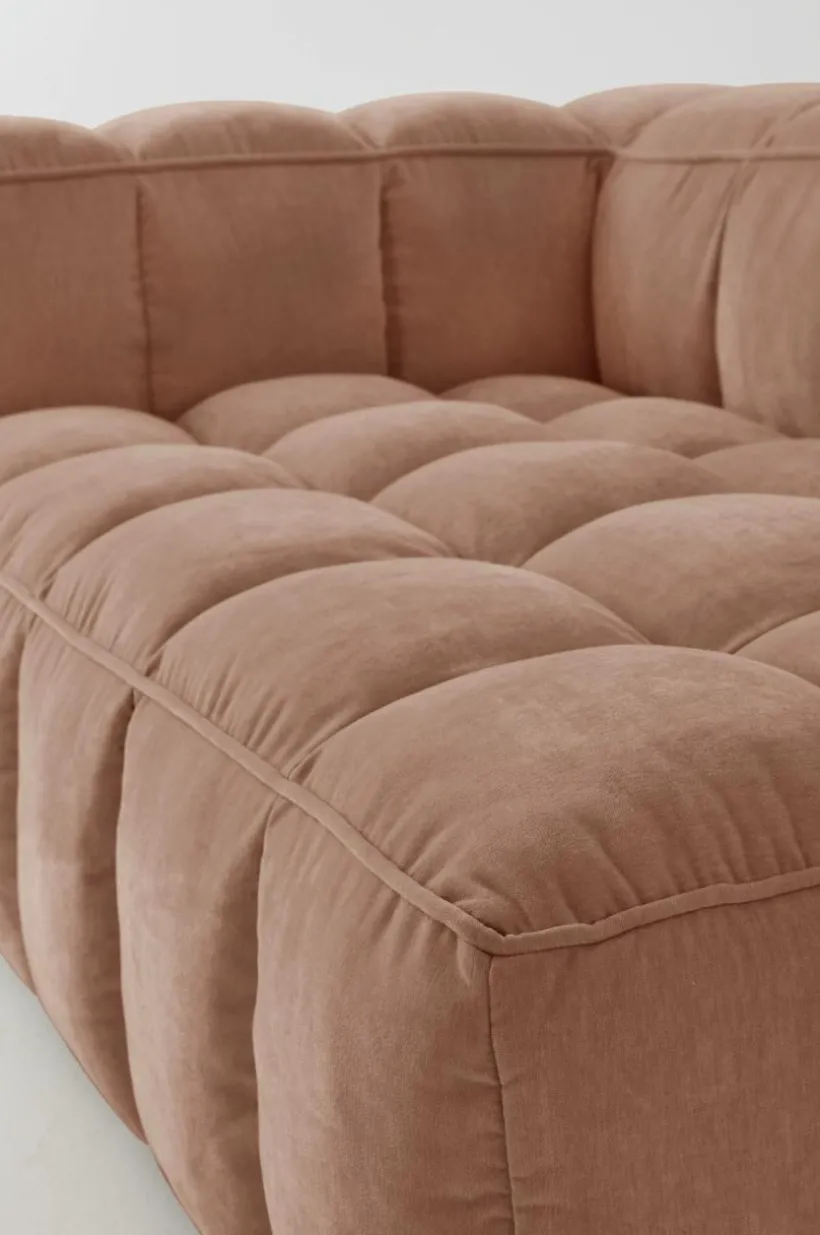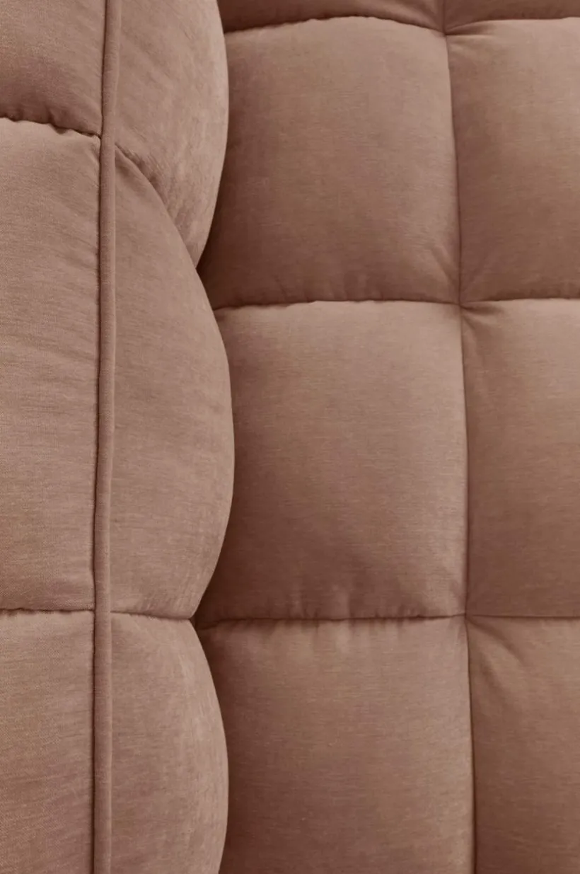 MEDFORD ger dig en maffig och generös soffa som är skön att koppla av i. Sittdjupet är tillräckligt för dig som vill dra upp benen i soffan när det är dags för filmkväll. Den bubbliga, inbjudande formen kommer av bekväm stoppning och klädsel av mjuk chenille med quiltsömmar över hela soffan. Chenilletyget är av polyester där 50% kommer från återvunnet material. Tyget har slitstyrka på 45000 Martindale. Klädseln är ej avtagbar.