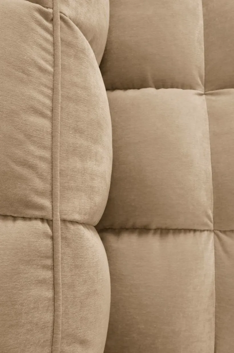 MEDFORD ger dig en maffig och generös soffa som är skön att koppla av i. Sittdjupet är tillräckligt för dig som vill dra upp benen i soffan när det är dags för filmkväll. Den bubbliga, inbjudande formen kommer av bekväm stoppning och klädsel av mjuk chenille med quiltsömmar över hela soffan. Chenilletyget är av polyester där 50% kommer från återvunnet material.Klädseln är ej avtagbar.
