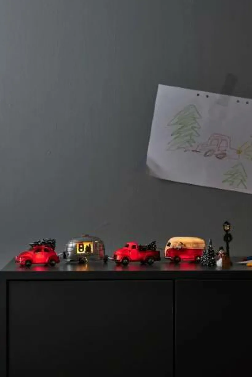 Dekorations set med 8 delar, passar perfekt som dekoration till jul. Setet består av tre fordon, en husvagn, lyktstolpe, granar, snögubbe och en ljussslinga. Det lyser fint i bilarna och husvagnen när produkten är på.produkten drivs av batteri. Placera på ett bord eller en hylla för en härlig julstämning.