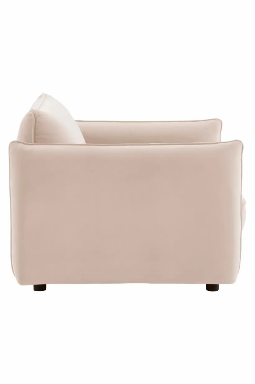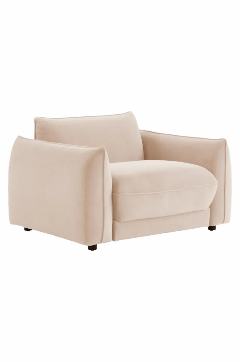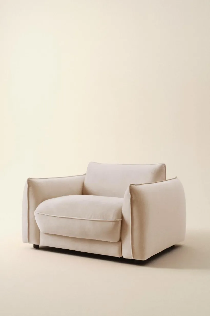 Fåtölj med stora, fylliga plymåer och mjuka, fina former. Designen är både attraktiv och avslappnad med runda former och mjuk sammetsklädsel av återvunnet material. Fåtöljen har stabil stomme av furu och plywood. Sittdelen är uppbyggd av kallskum och zickzackfjädring vilket ger god sittkomfort, MOLTON är en fåtölj som är perfekt när det är dags att träffa vänner, kanske lite sällskapsspel på gång?