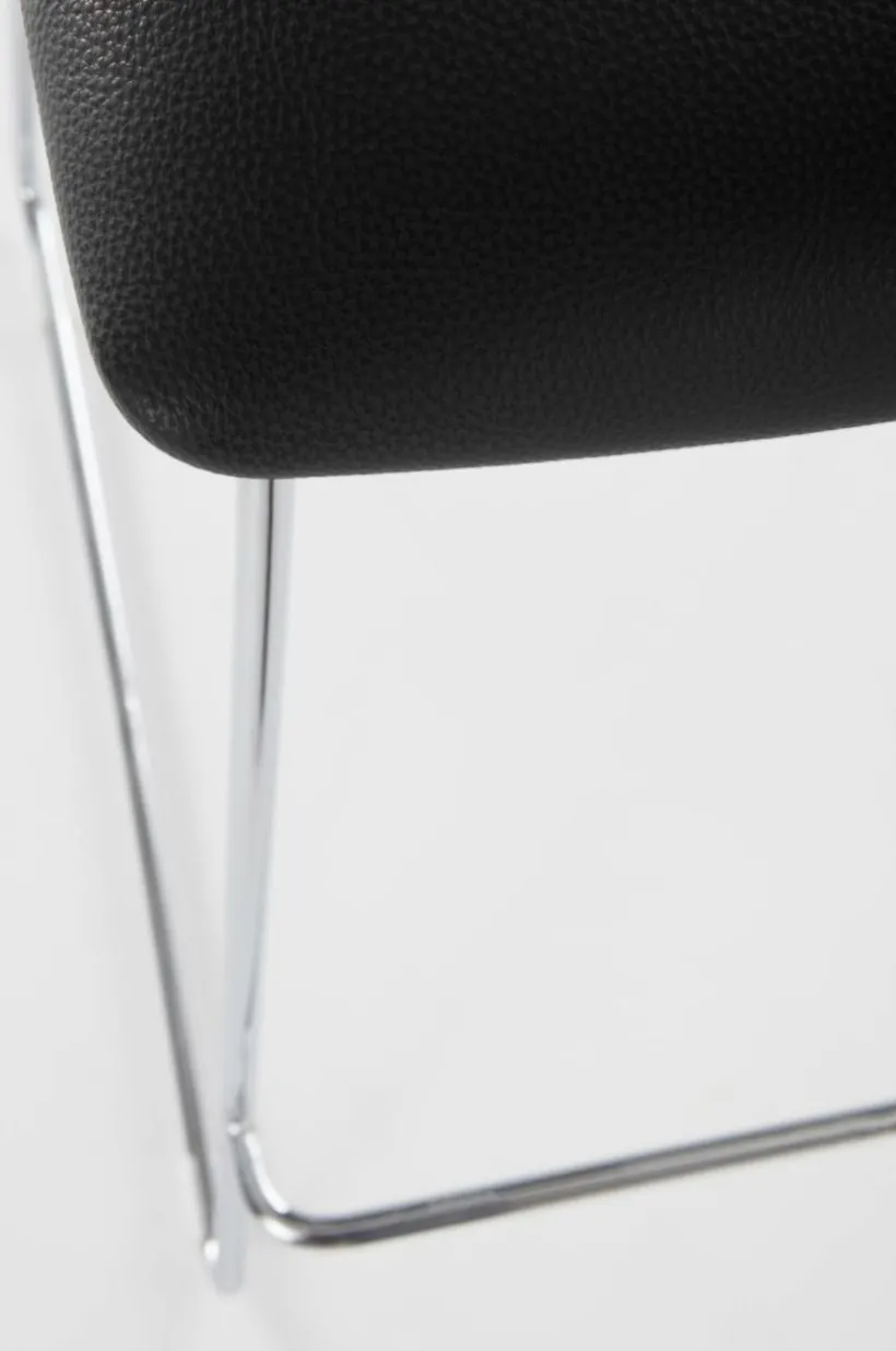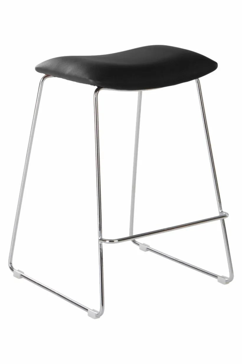 MOSS barstol är tillverkad av metall med snygg kromfinish och har ett slitstarkt överdrag i läderimitation. Fyllningen är mjuk så att du sitter bekvämt. Barstolens praktiska fotstöd ger extra komfort. Förhöj ditt kök i trendig stil.